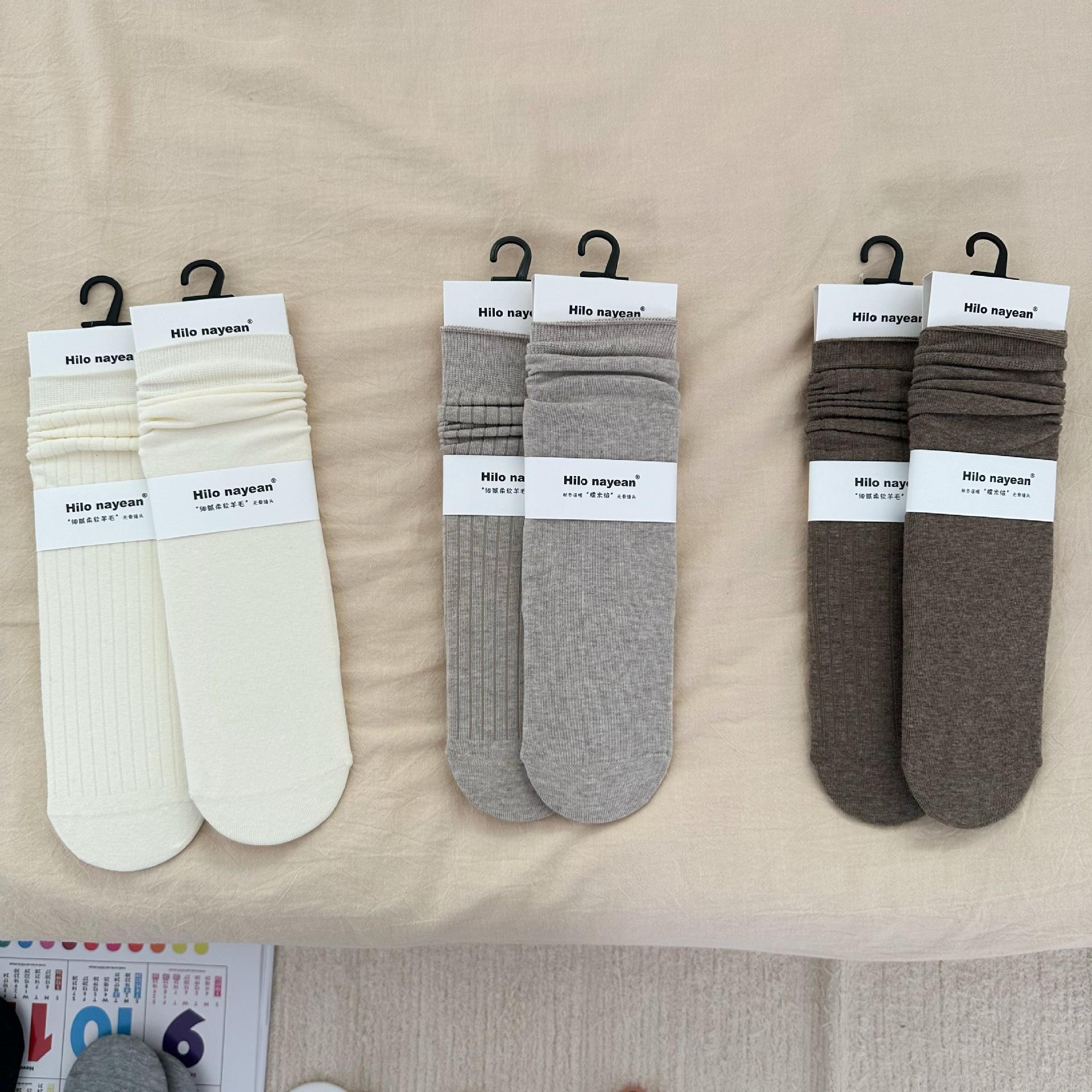 Nanye Socks Women's Gentle Vertical Stripe Flat Color Spinning South Korea Color Cream Grey Stacking Socks Women