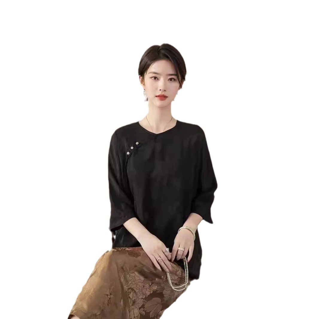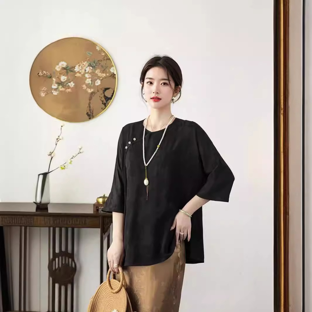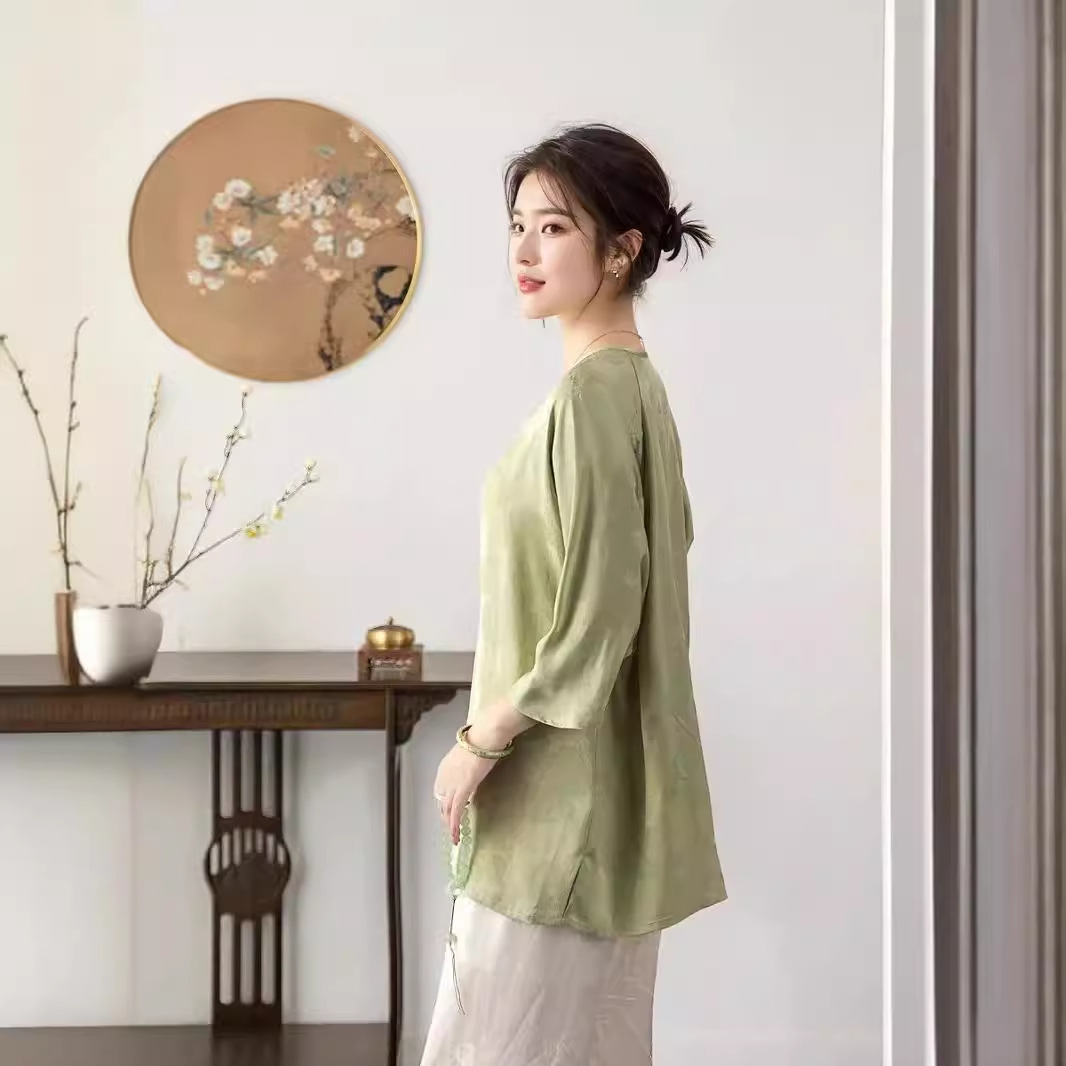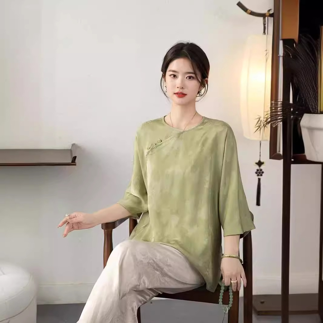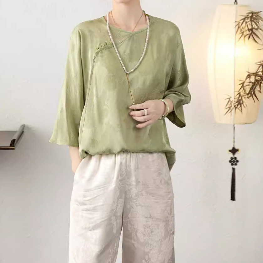 | nameOriginal | Nanyou 24 Summer New Chinese Style Silk Jacquard Slant Collar Top National Style Buckle Loose Tang Suit Shirt for Women |