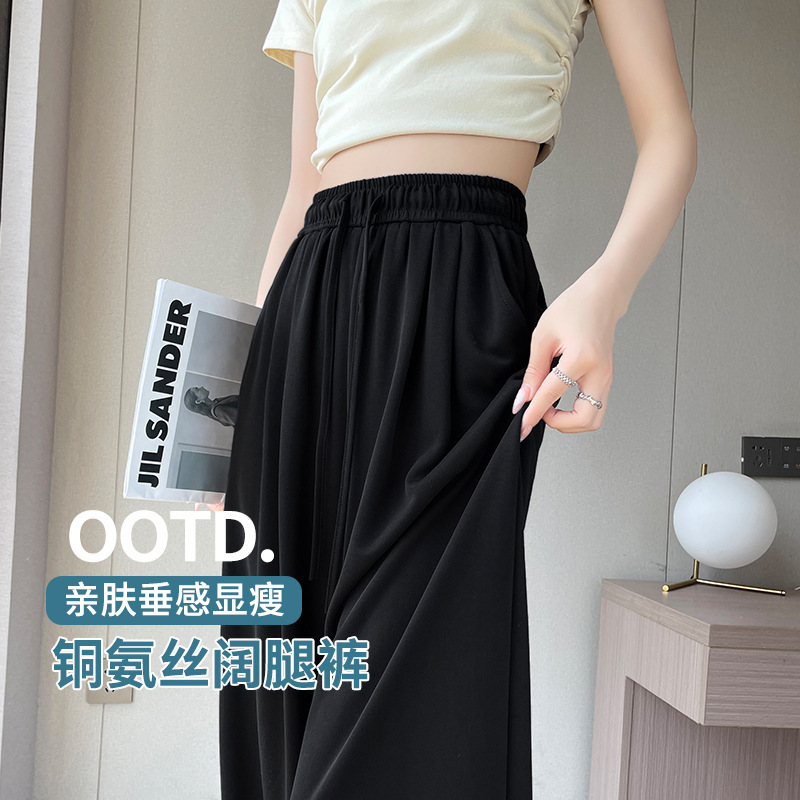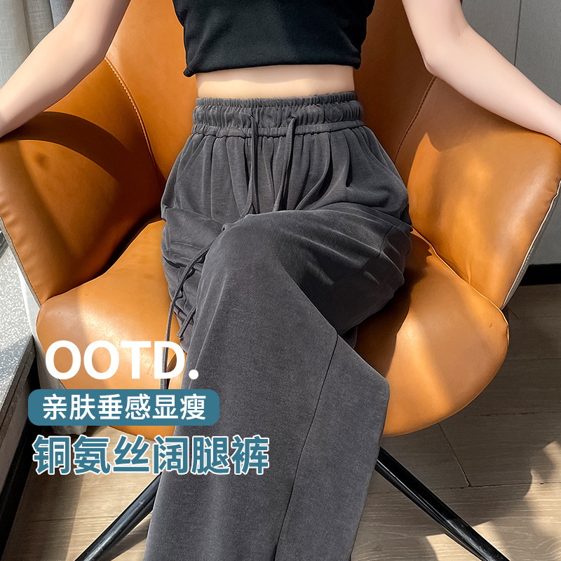 Narrow Ice Silk Wide-leg Pants Women’s 2024 New Summer Copper Ammonia Silk Dosing Casual Pants Straight Pants