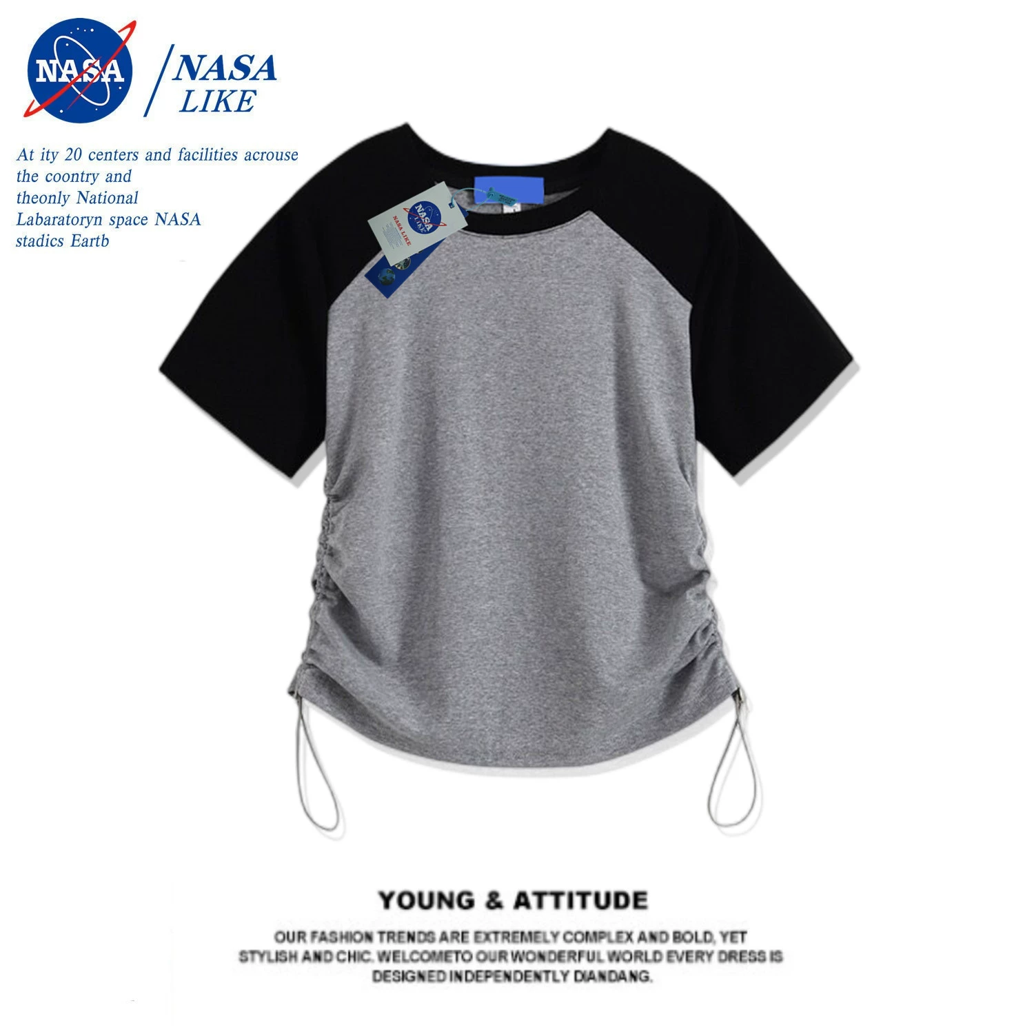 | nameOriginal | NASA American drawstring lace contrasting raglan short-sleeved T-shirt for women in summer niche design slim short top |