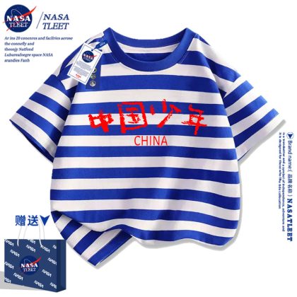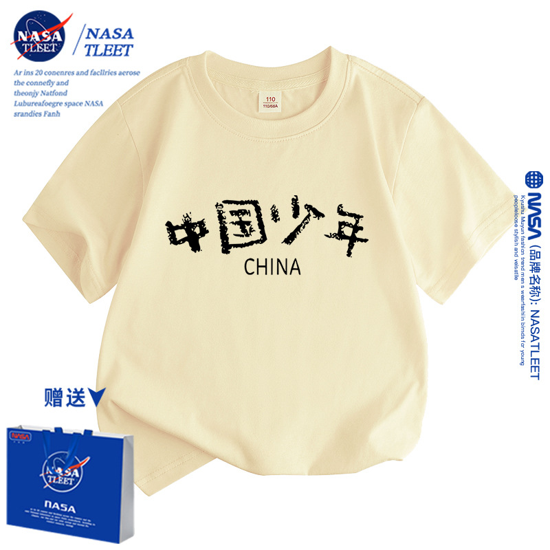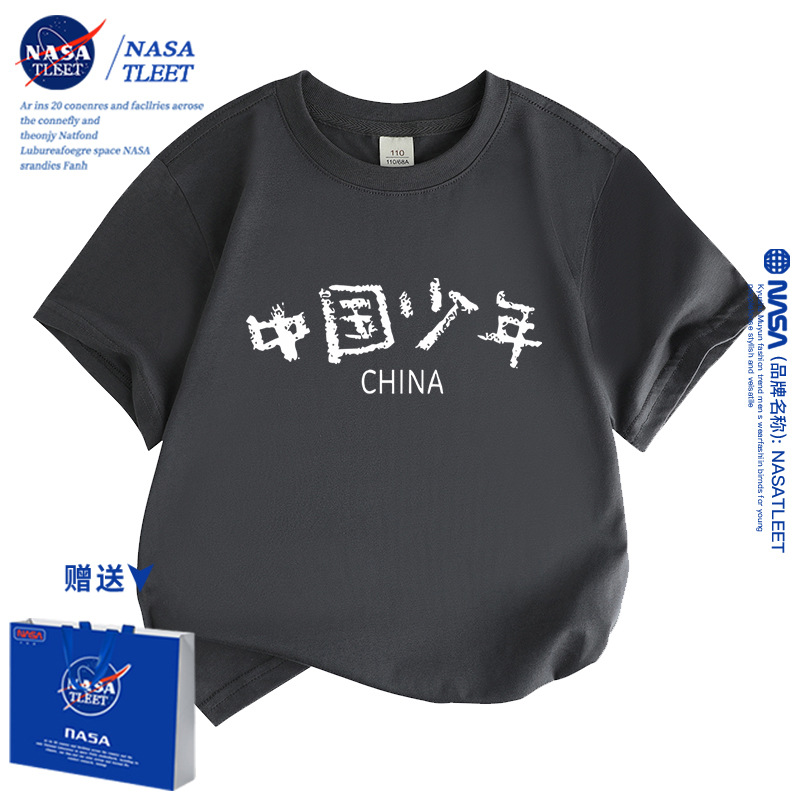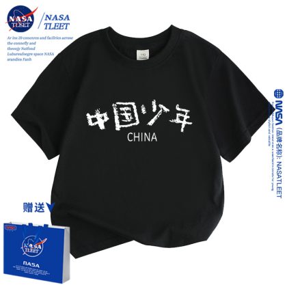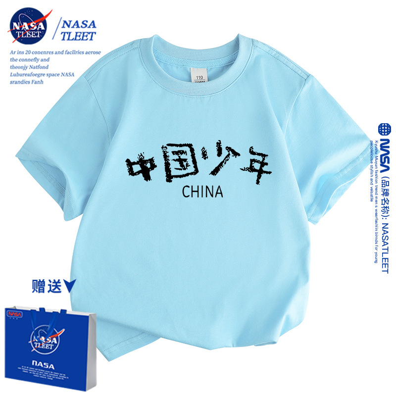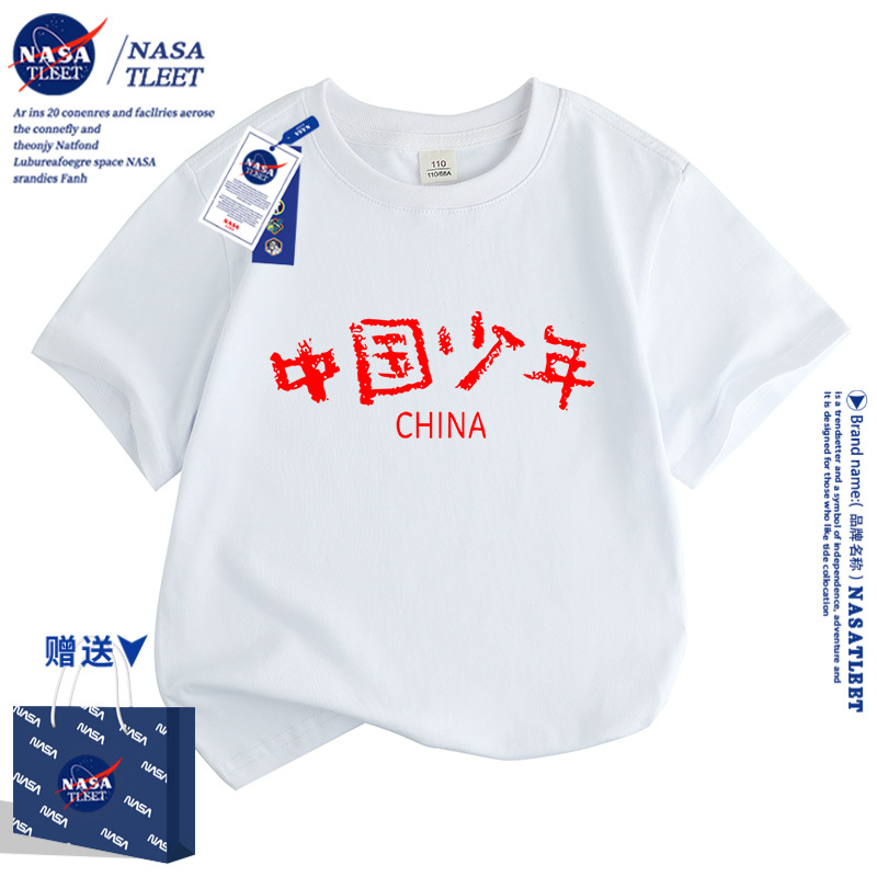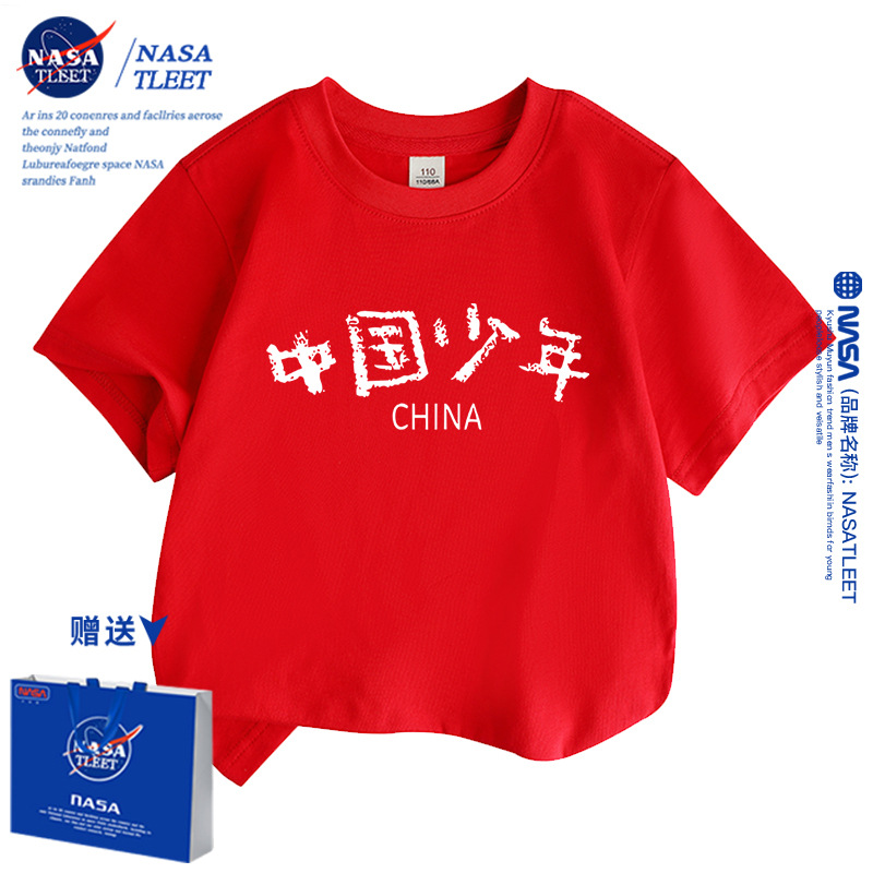 | nameOriginal | NASA Chinese children's short-sleeved T-shirt for boys and girls national fashion top trendy children's cotton half-sleeved class uniform performance clothes |