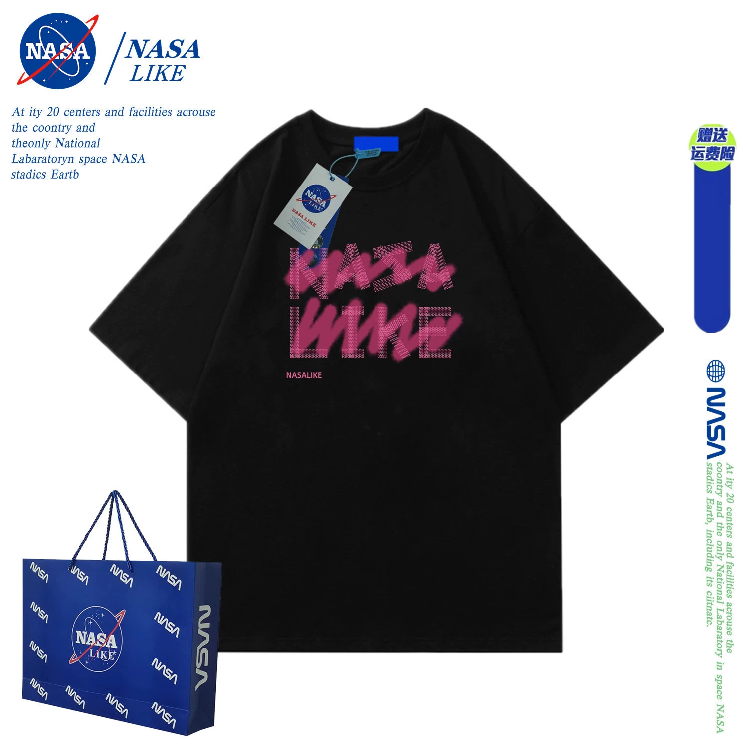 | nameOriginal | NASA one long and one short couple short-sleeved t-shirt for women summer national fashion brand niche design hot girl short top |