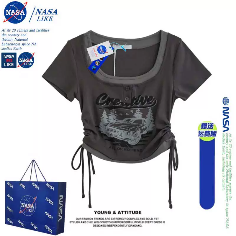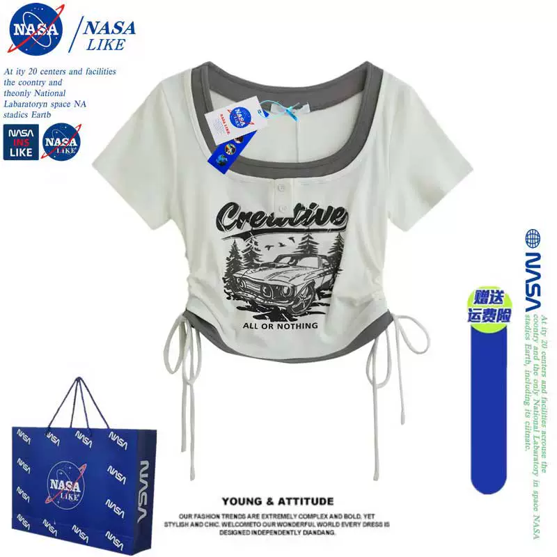 | nameOriginal | NASA retro hottie short-sleeved summer drawstring fake two-piece |