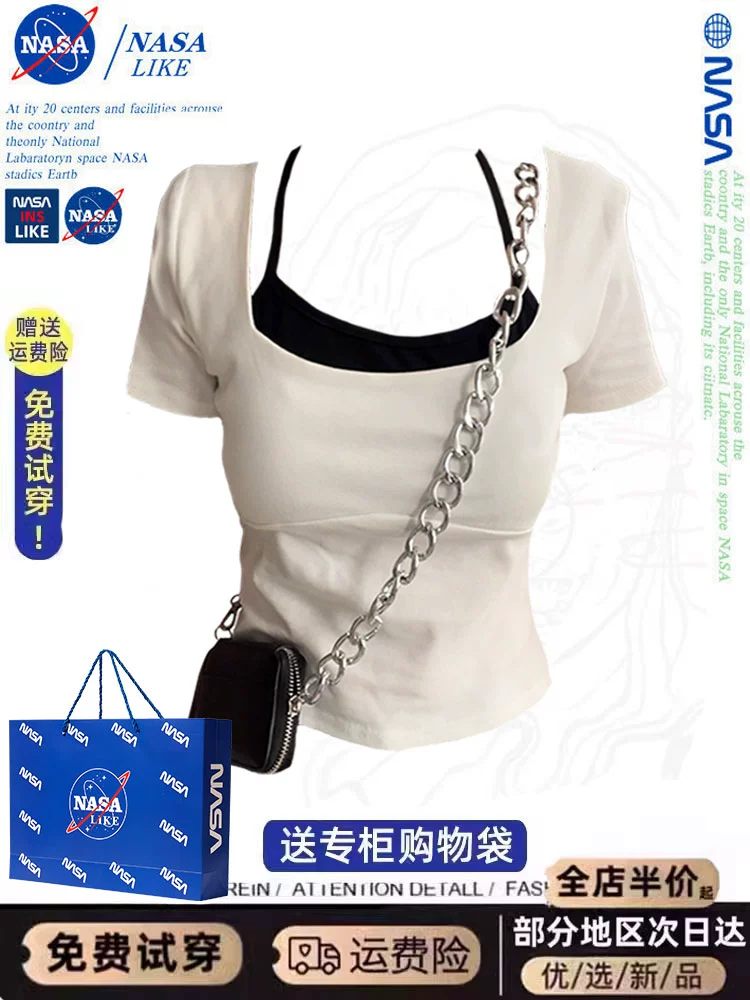 | nameOriginal | NASA short-sleeved summer slim-fitting shoulder top fake two-piece |
