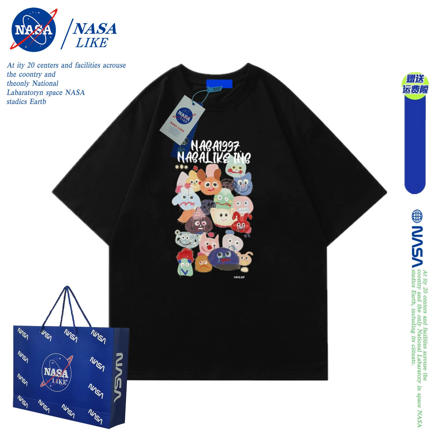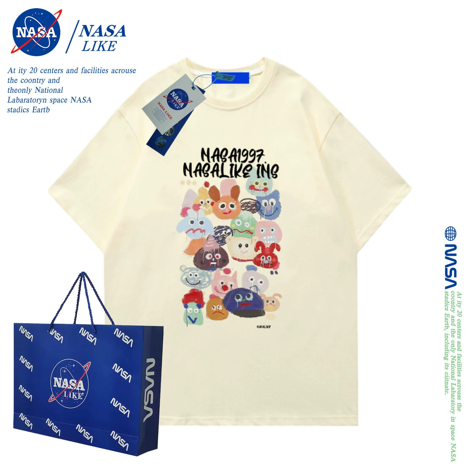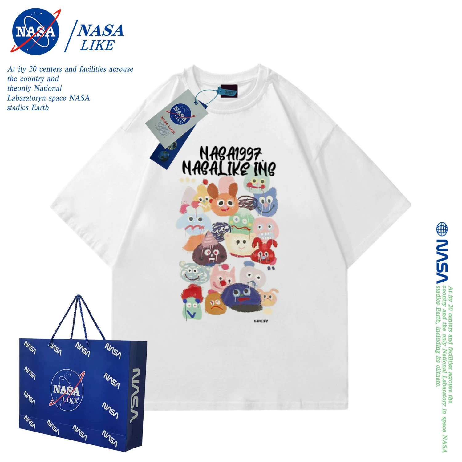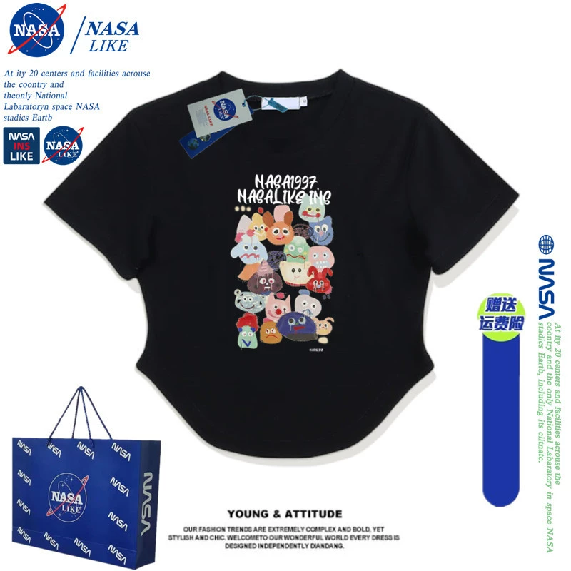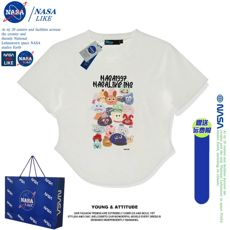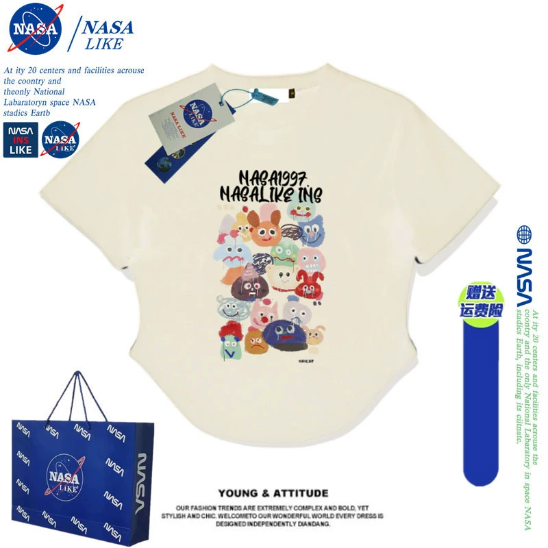 | nameOriginal | NASA short-sleeved T-shirt women's short slim fit bm style couple 2024 summer new cartoon top American retro hottie |