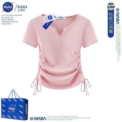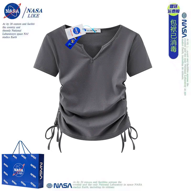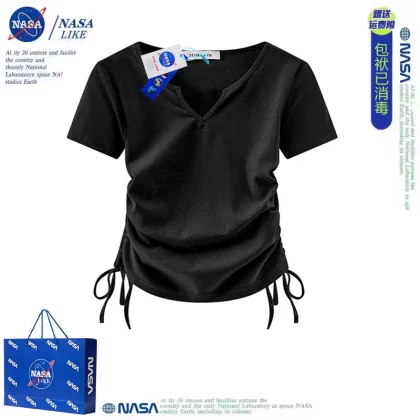 | nameOriginal | NASA shoulder short-sleeved T-shirt women's high-waist pure lust hottie slim T-shirt v-neck short slim drawstring top summer |