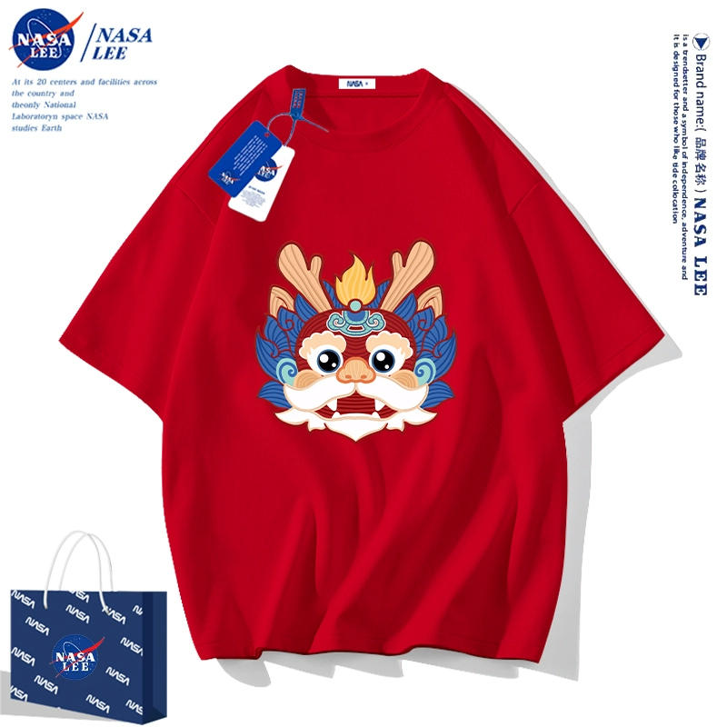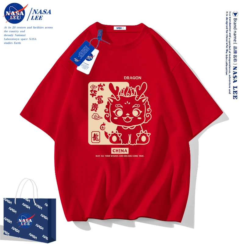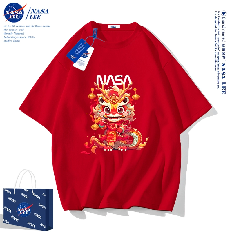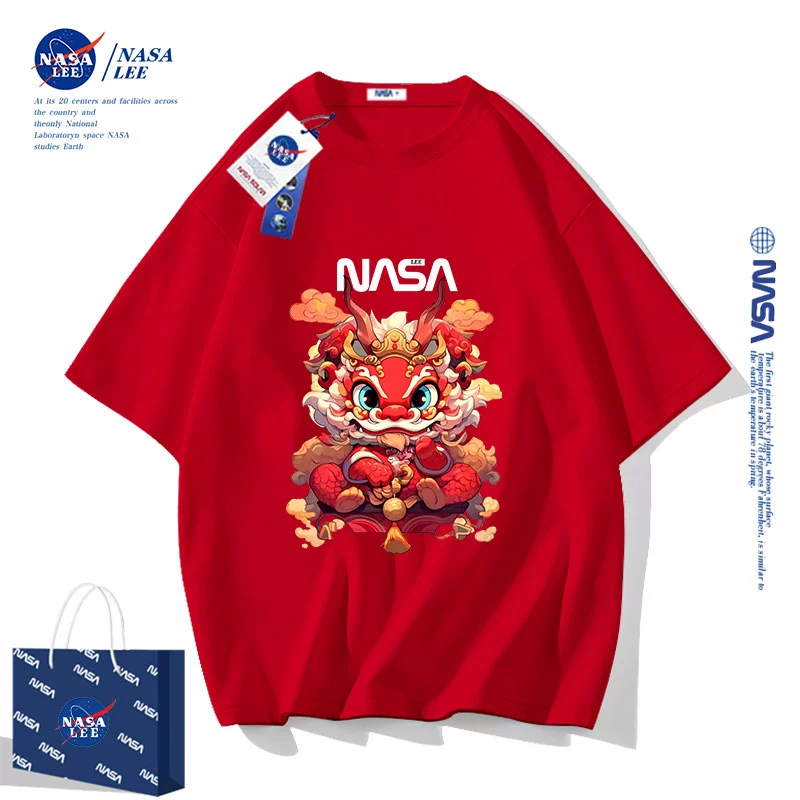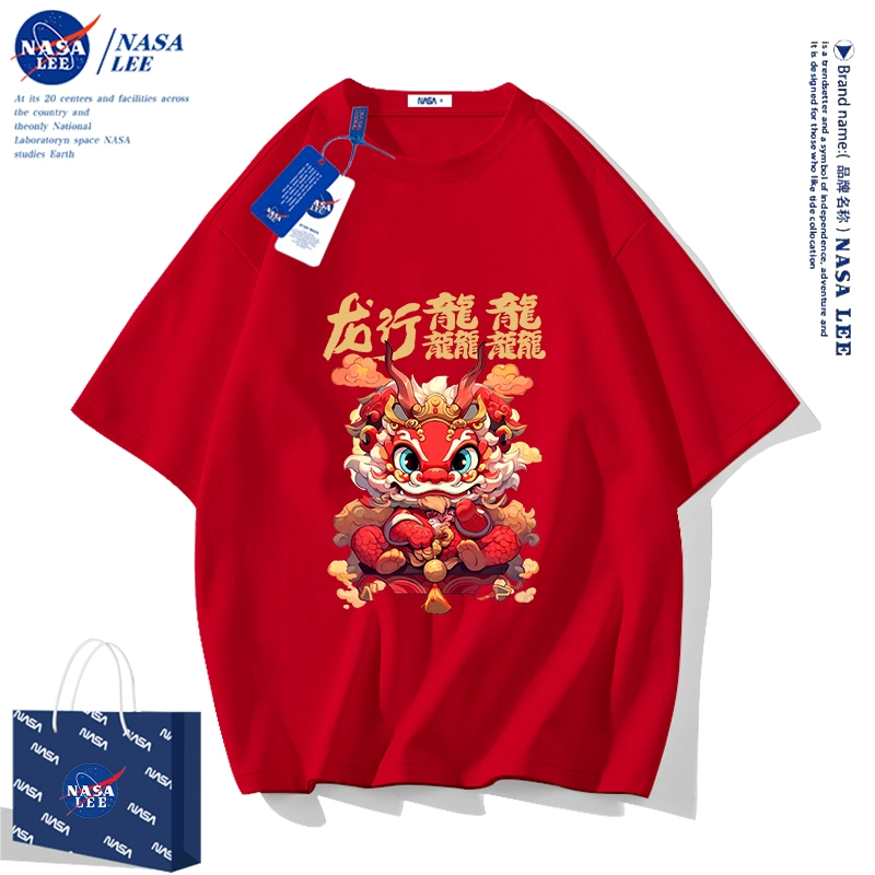 | nameOriginal | NASA2024 Year of the Dragon zodiac year clothes children's short-sleeved t-shirt New Year's children's clothing boys and girls red half-sleeved |