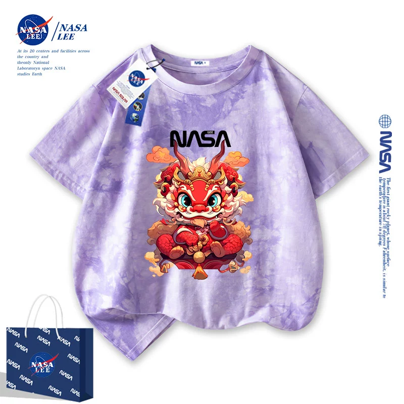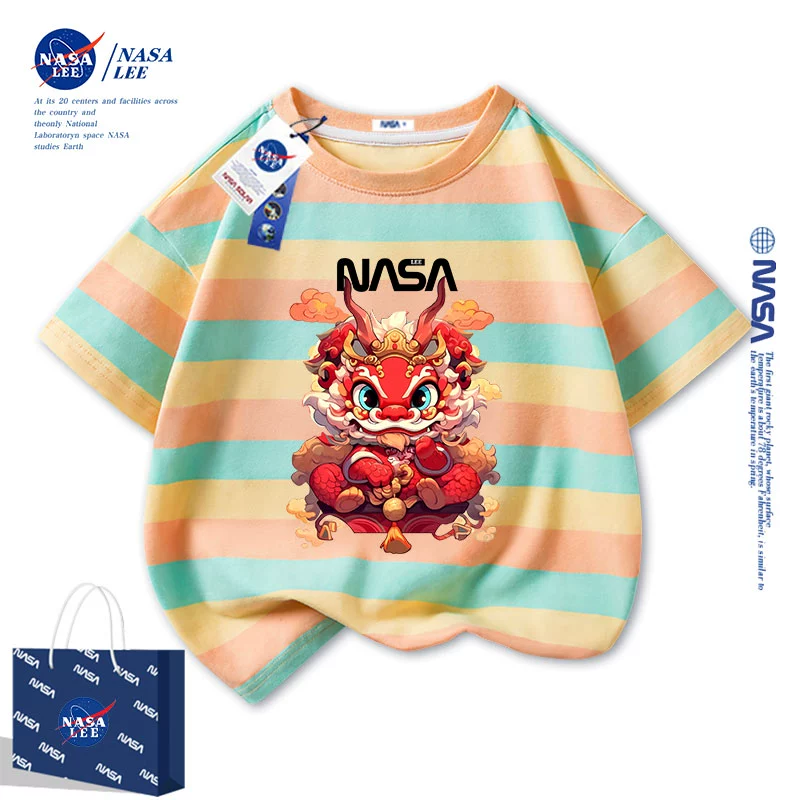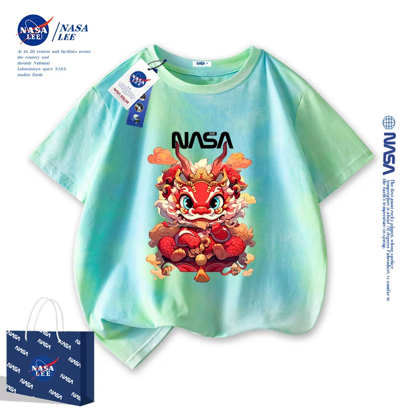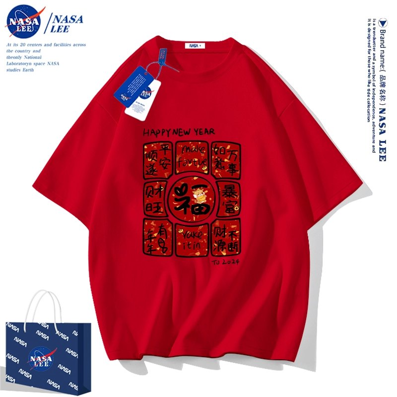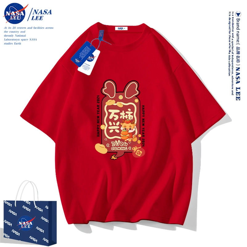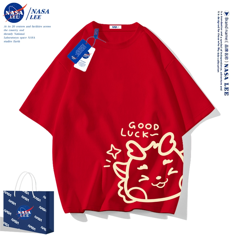 | nameOriginal | NASA2024 Year of the Dragon zodiac year clothes children's short-sleeved t-shirt New Year's children's clothing boys and girls red half-sleeved |