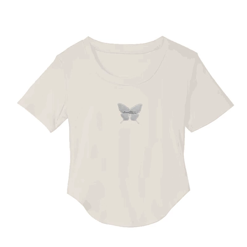 NASA ~ Positive shoulder butterfly short T -shirt Female summer design sense niche slimming thin waist hot girl shirt top