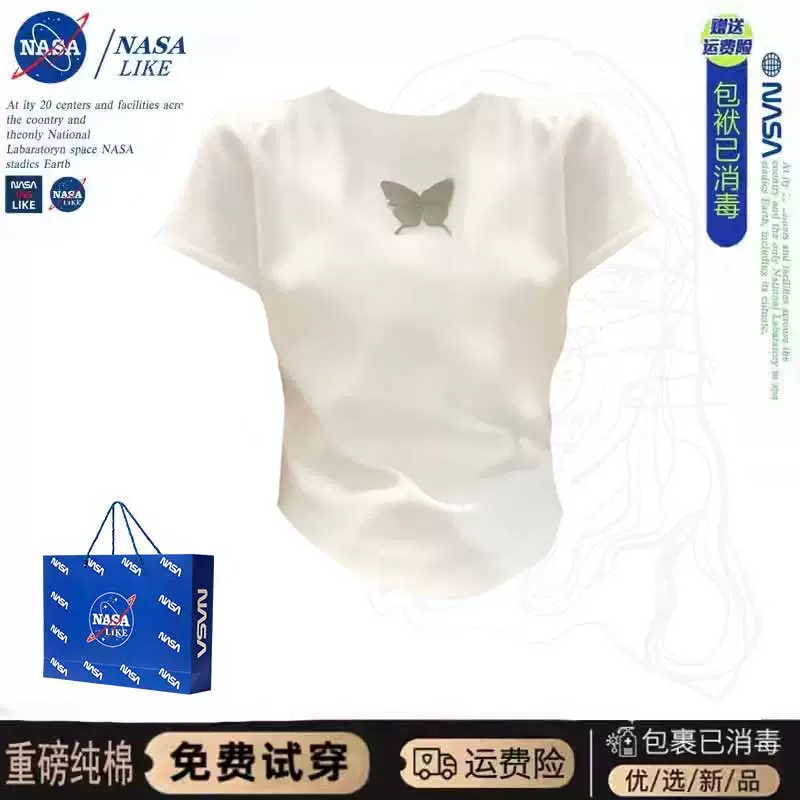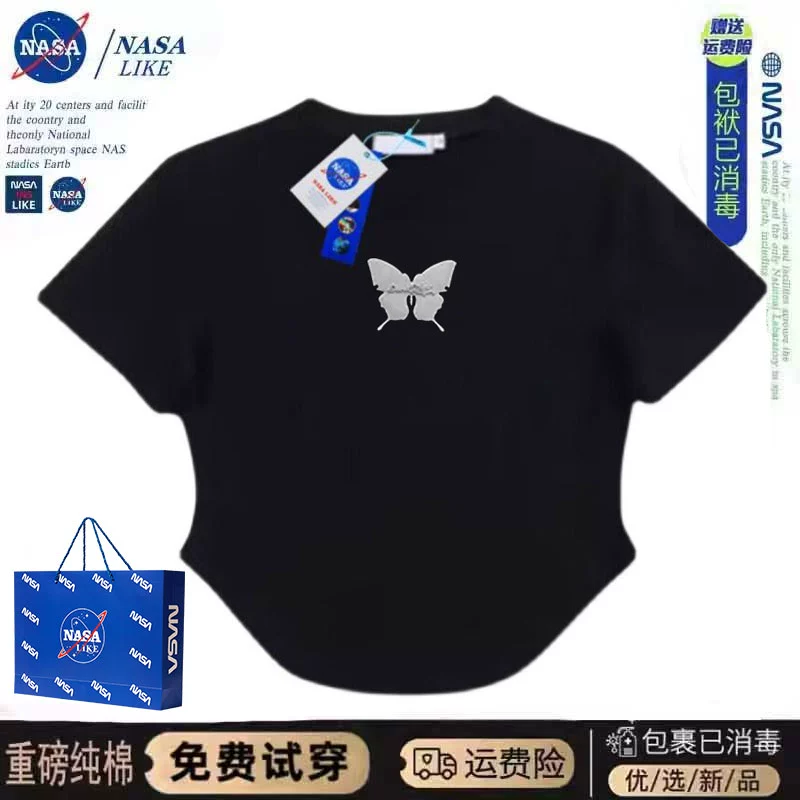 NASA~Right shoulder butterfly short T-shirt for women with summer design niche slimming waist hot girl top