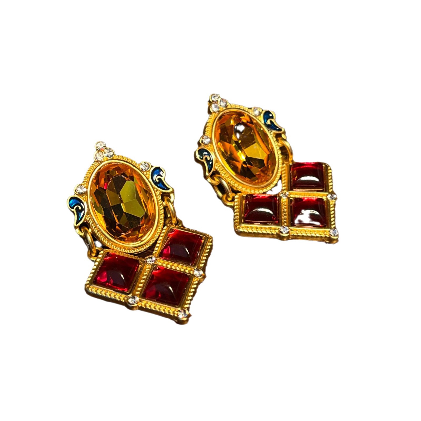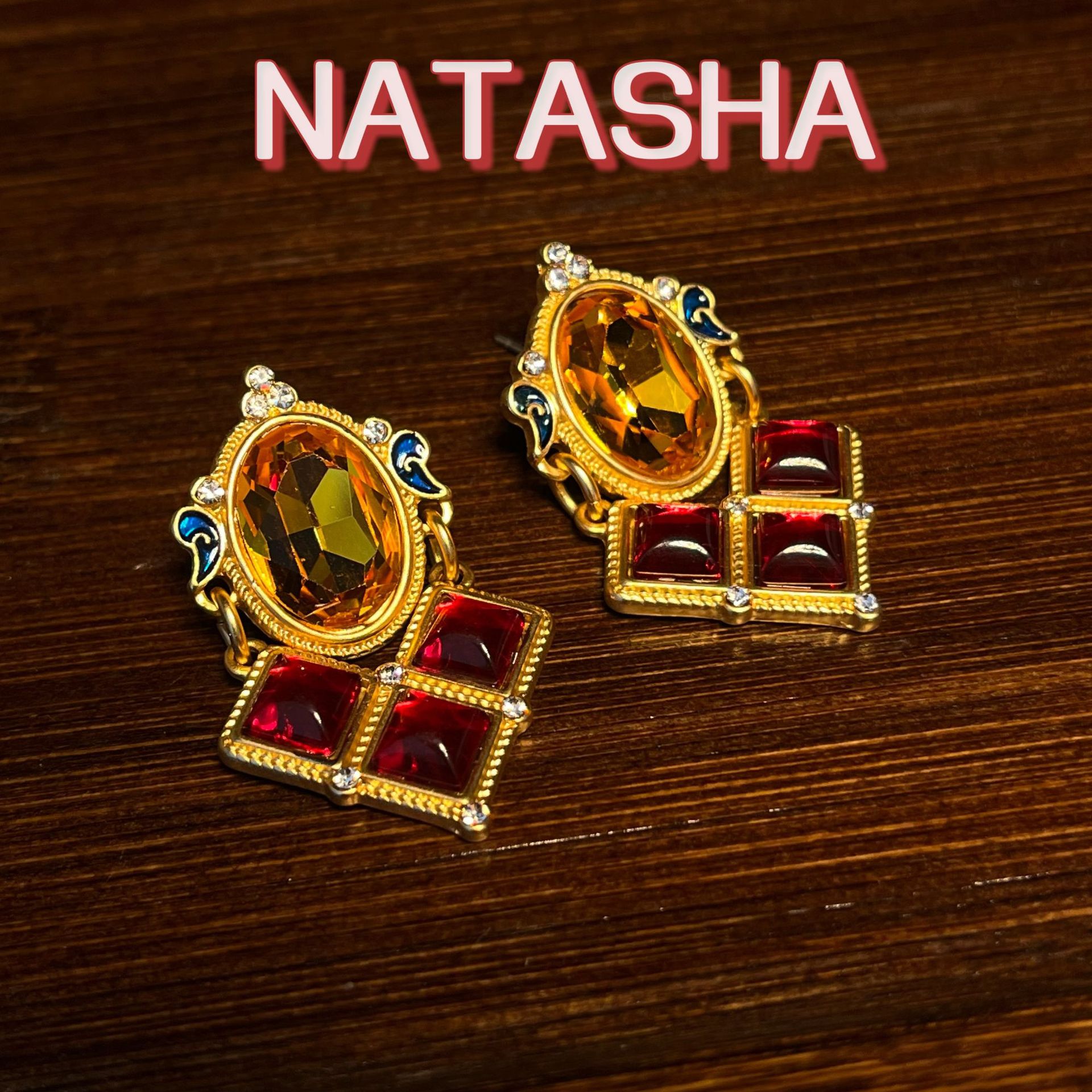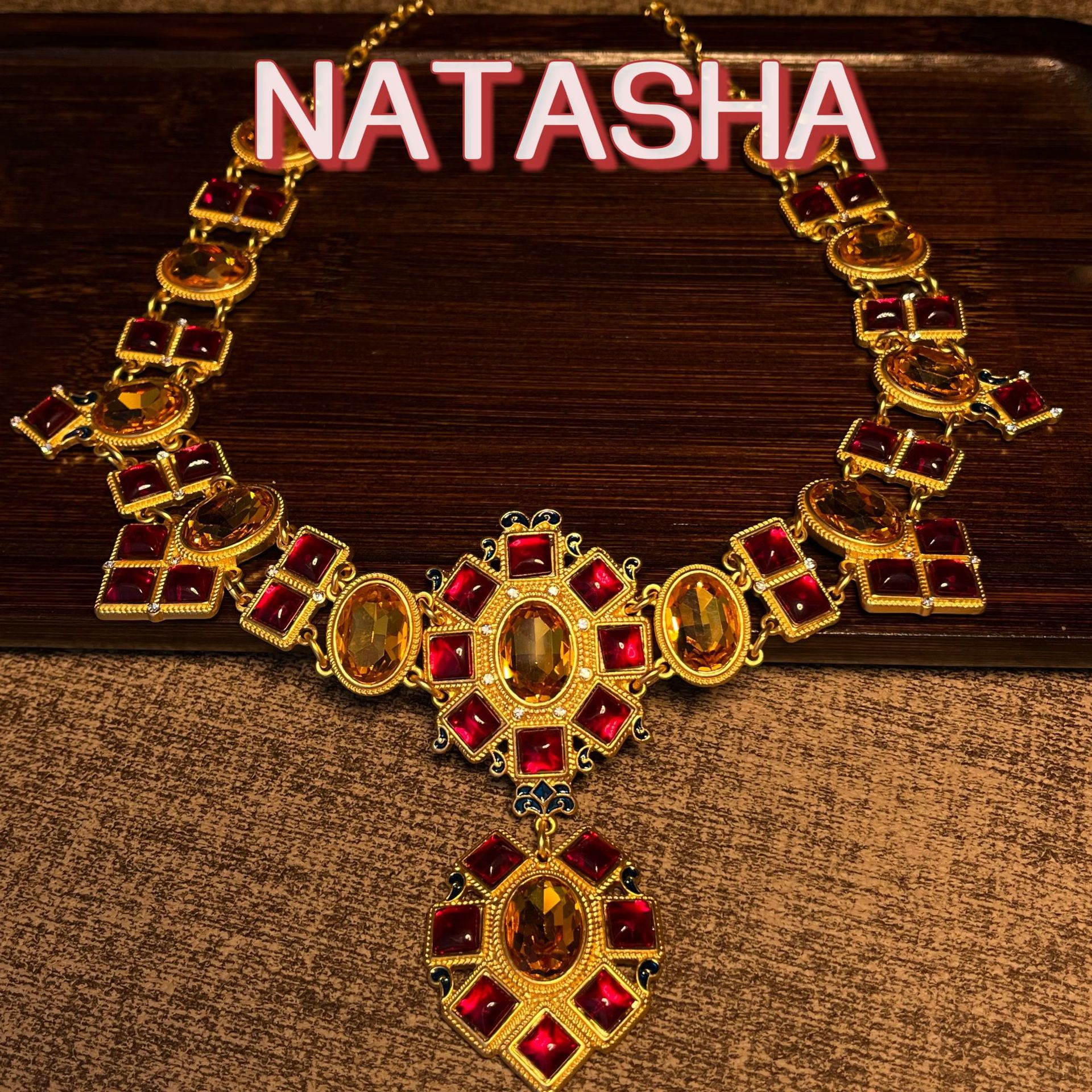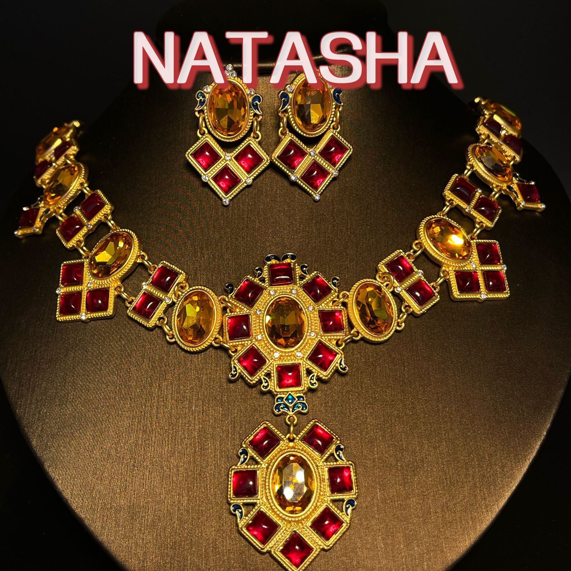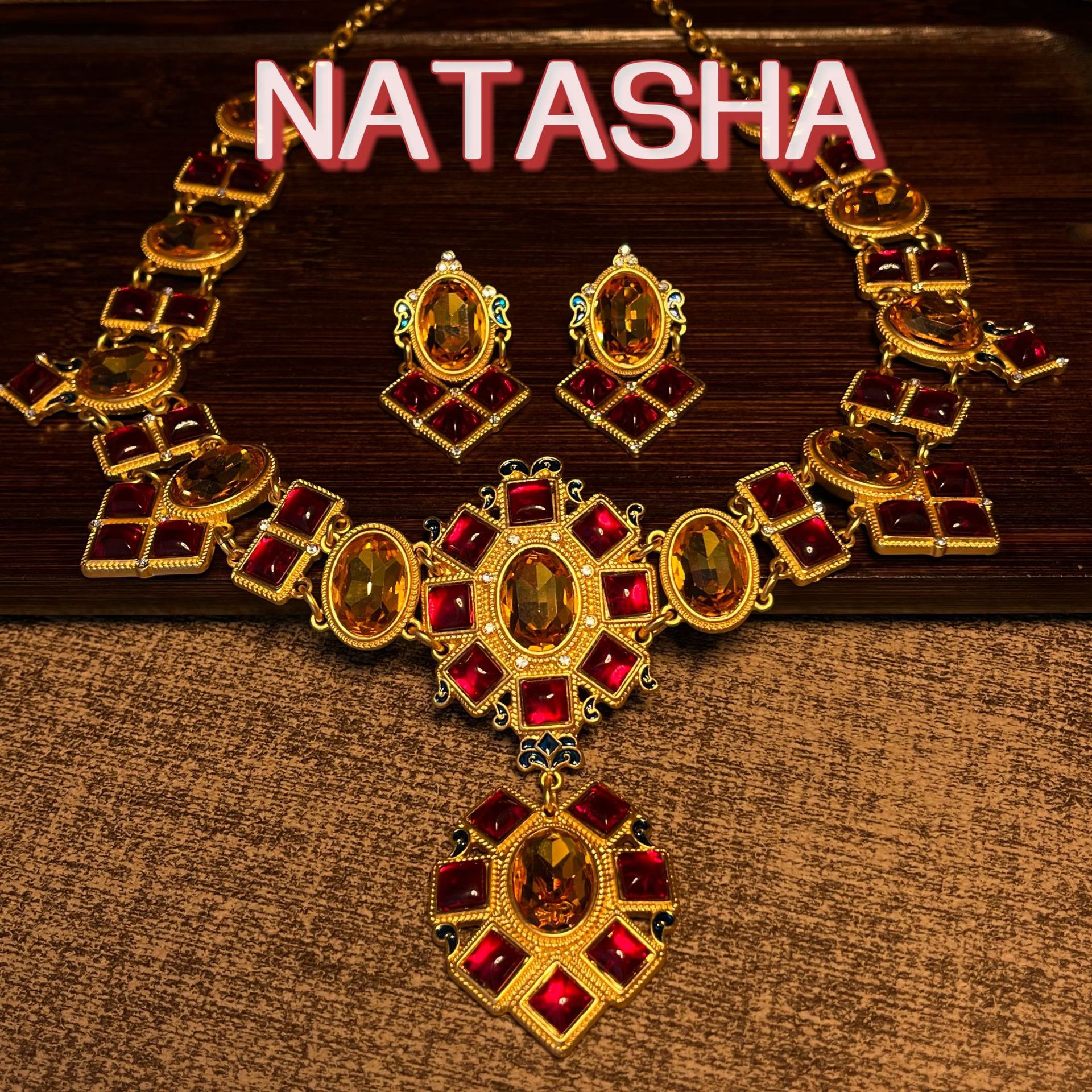 Natasha Retro Geometric Diamond Court Clavicle Chain European and American Elegant Elegant Red Earrings Necklace Light Luxury suit