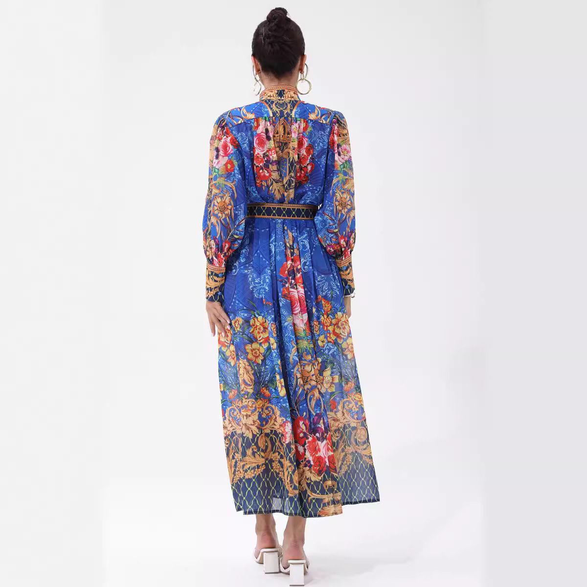 | nameOriginal | National dress Cross-border Independent Station Amazon New Stand Collar Waist Positioning Printed Temperament Dress Wholesale |