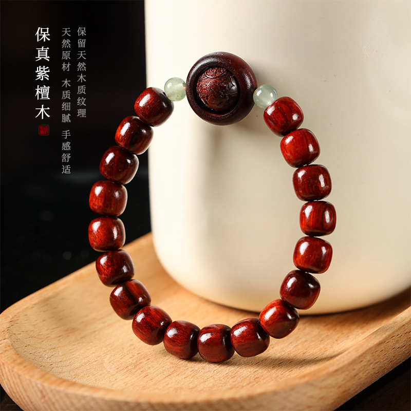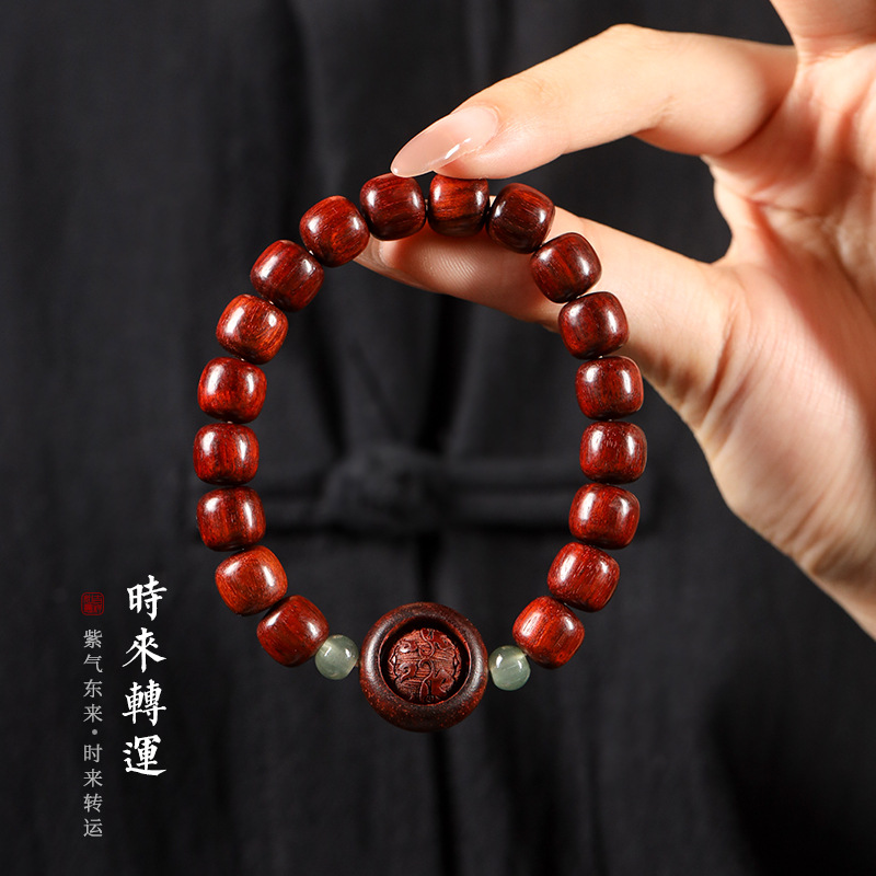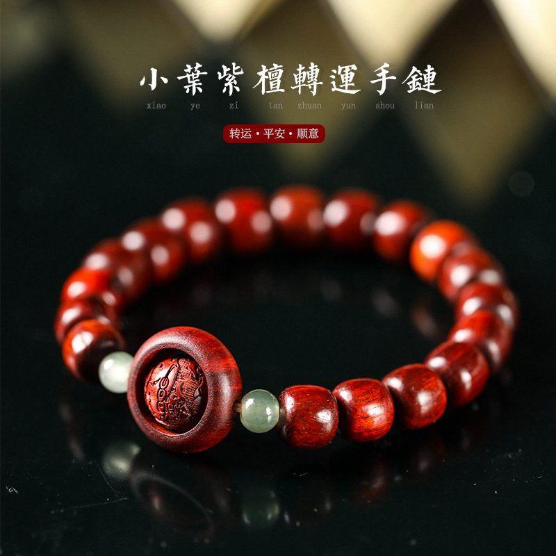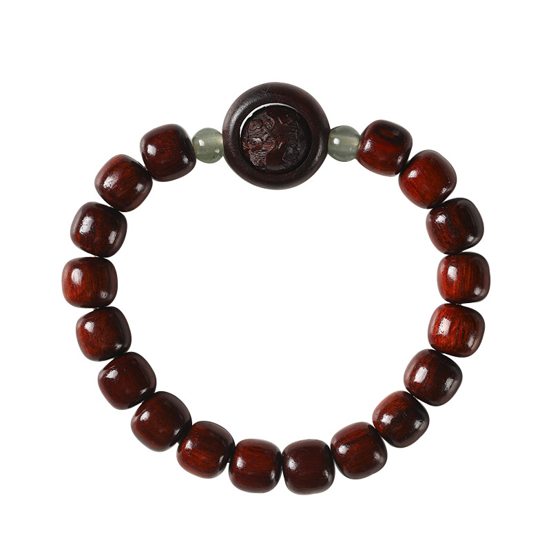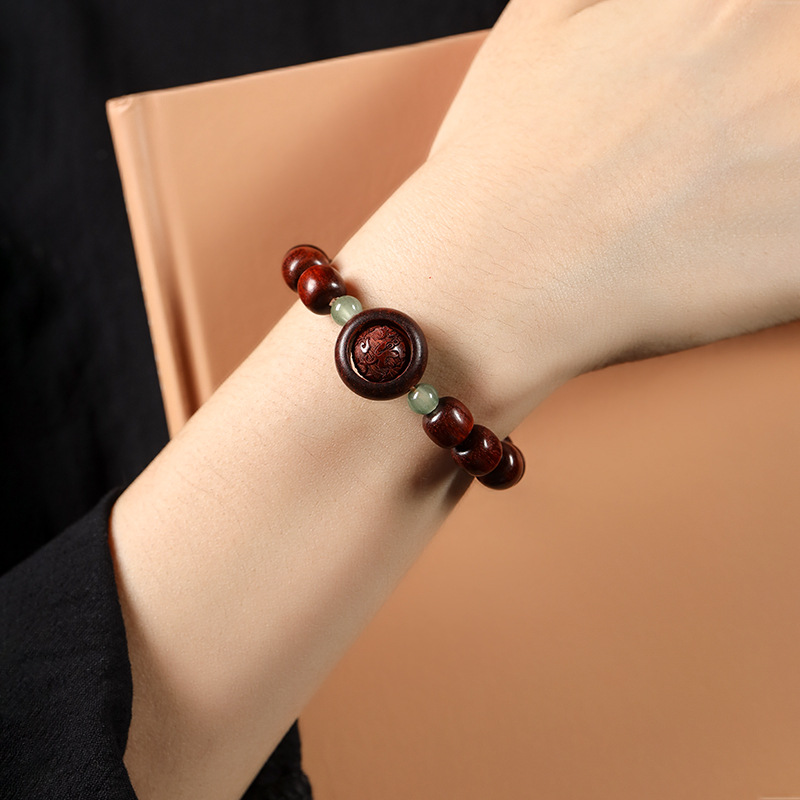 National fashion ethnic style creative new Rosewood single ring bracelet with carved lucky beads Jade with beads men and women chain