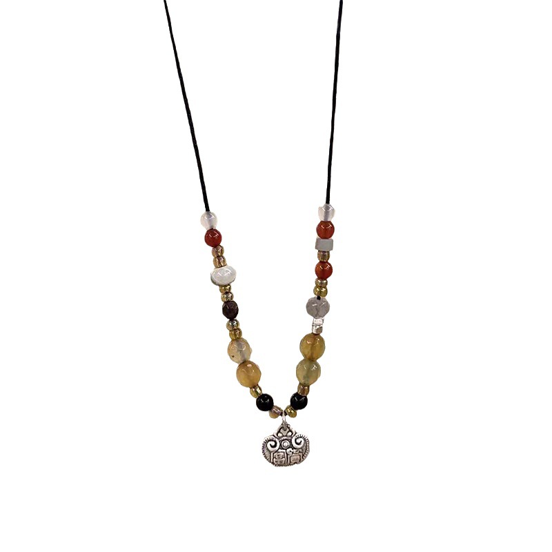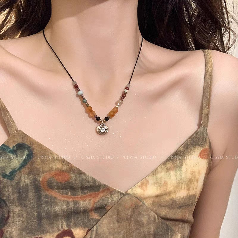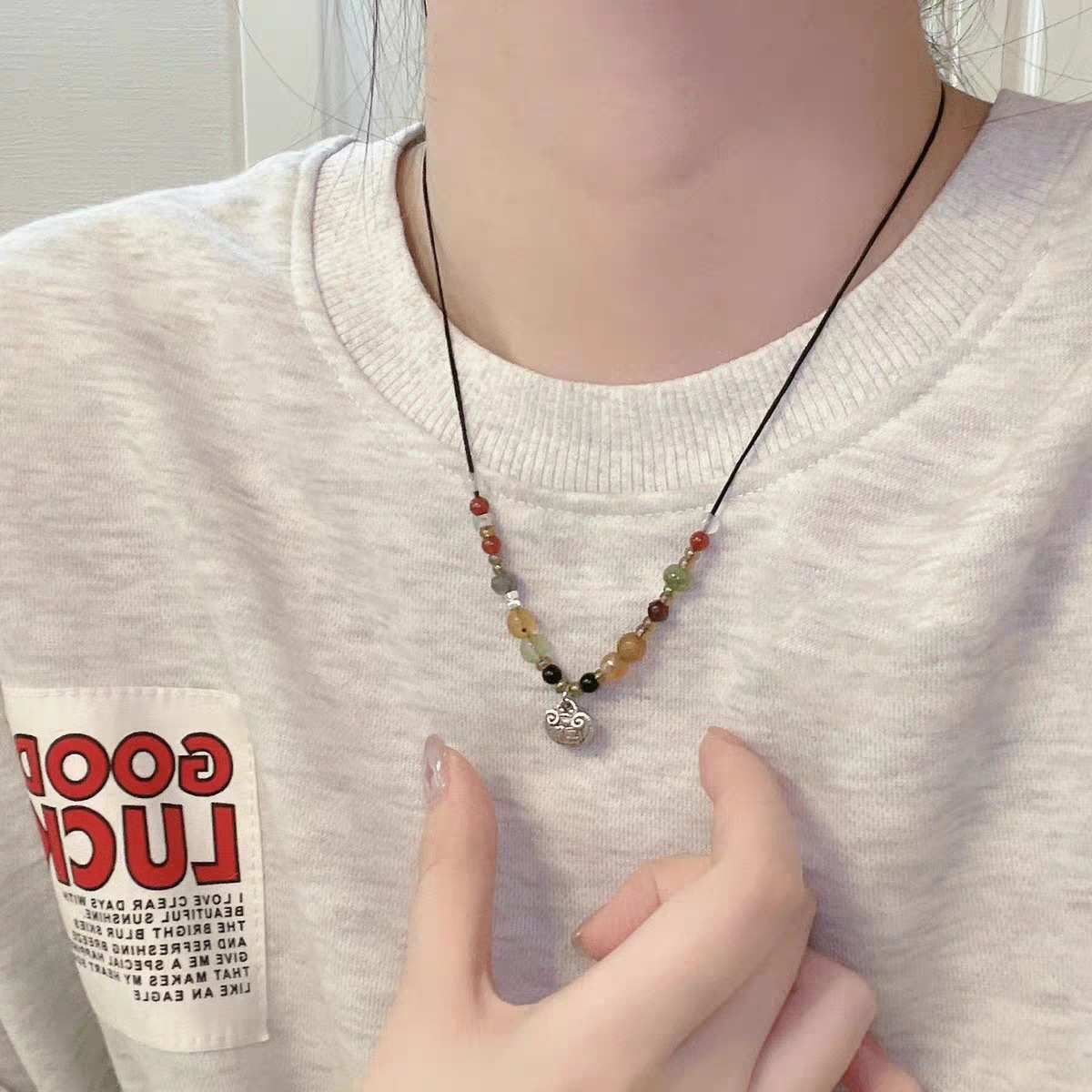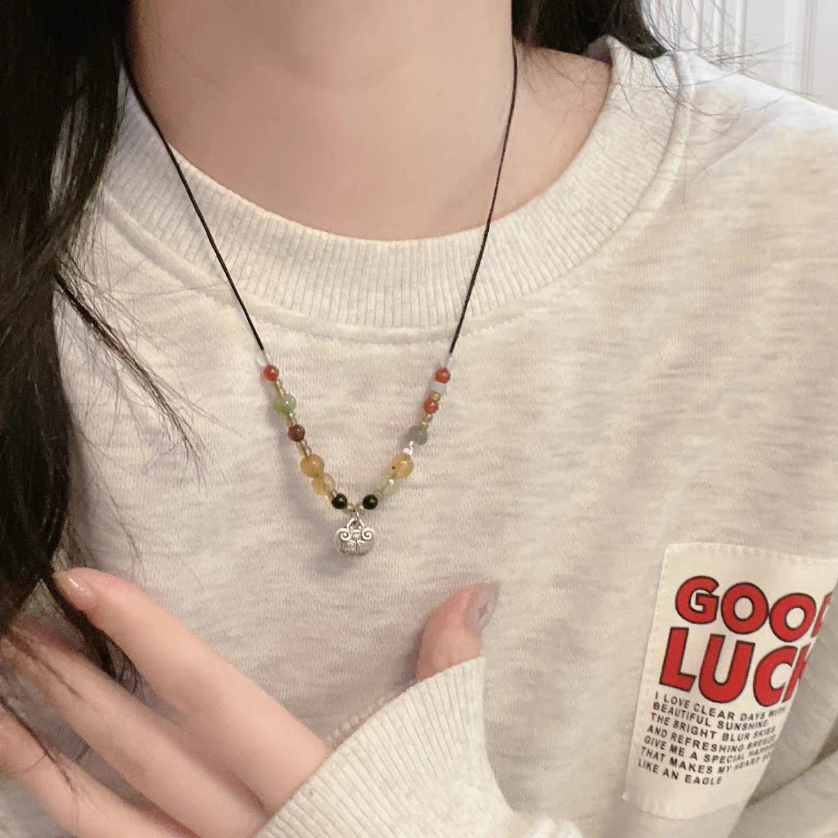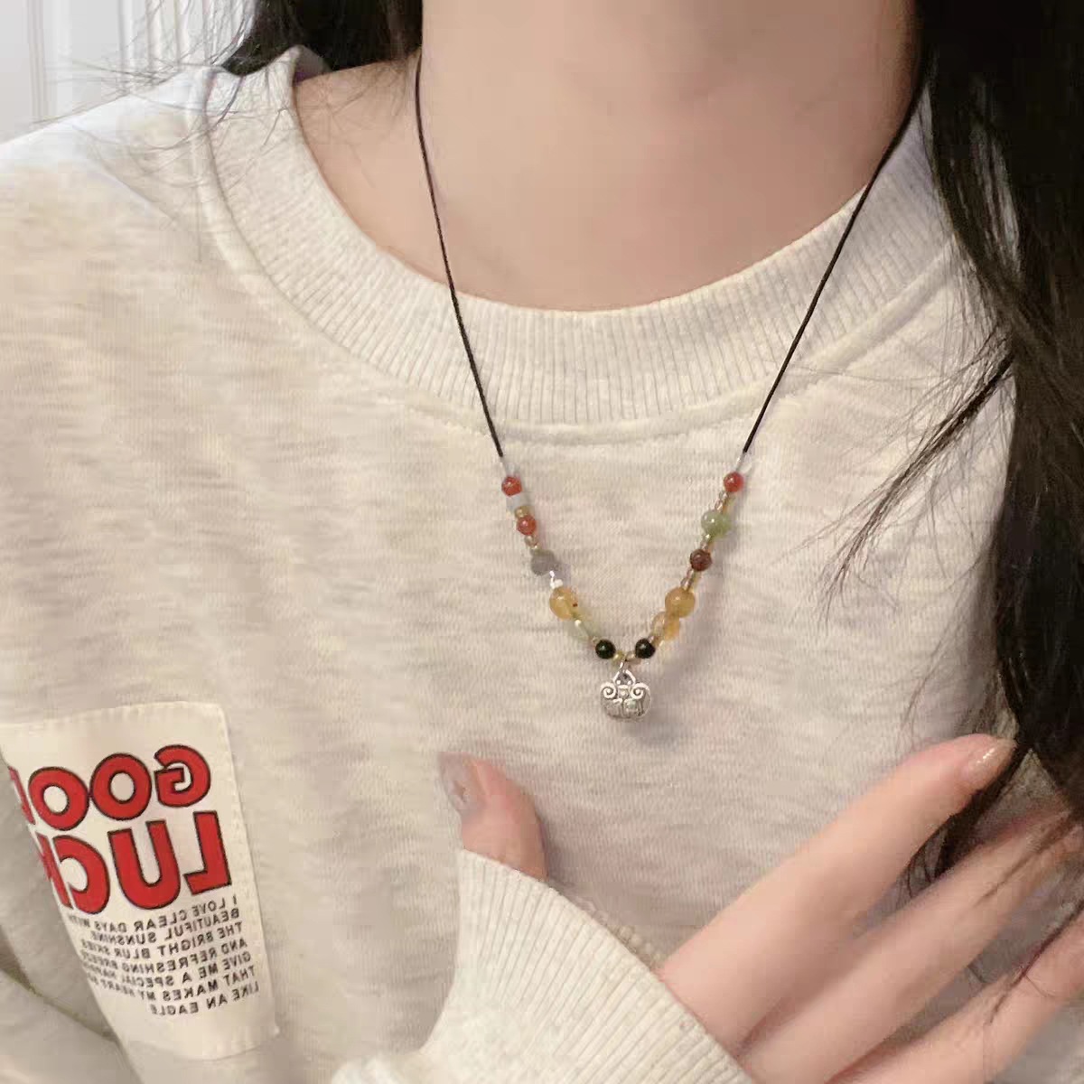 National fashion retro new Chinese style safety lock necklace women’s colorful beaded woven necklace Hanfu National style clavicle chain accessories