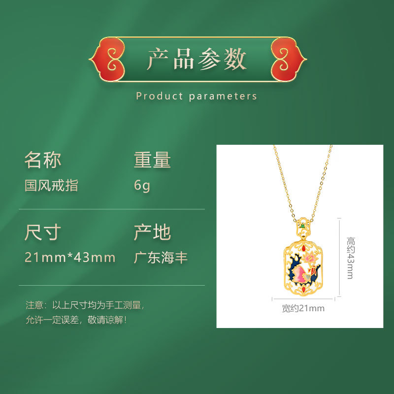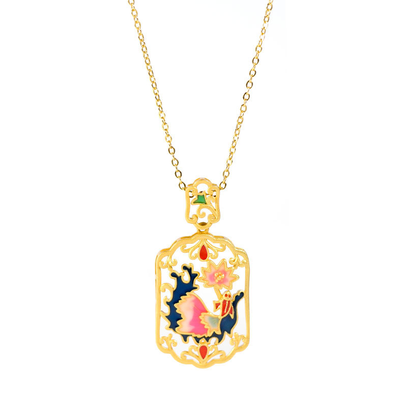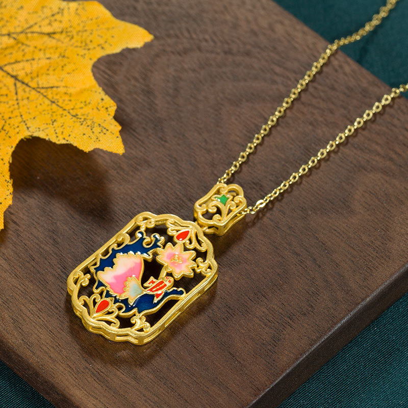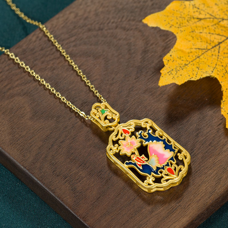 | nameOriginal | National Fashion Retro Original New Chinese Enamel Color Design Hollow Ancient Gold Pendant Women's Antique All-match Pendant Necklace |