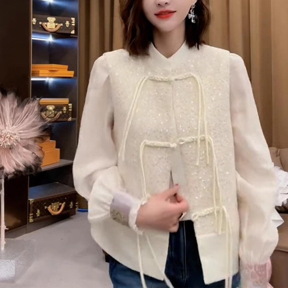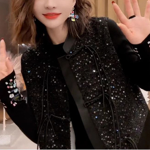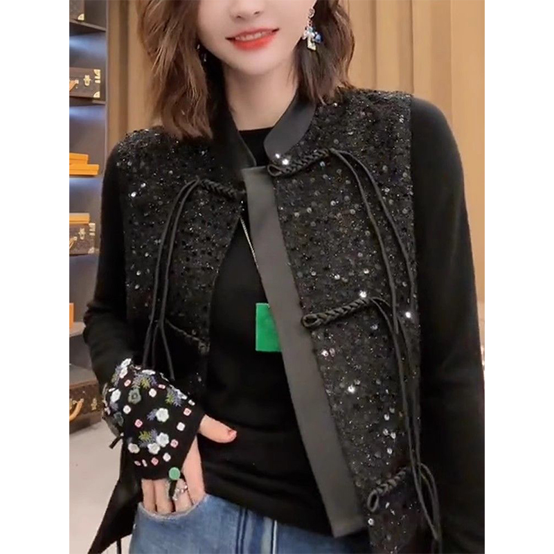 National Style Button Sequin Vest Women's Design Sense 2024 Spring and Summer New Chinese Style Chanel Style Fashion All-match Outer Wear Vest