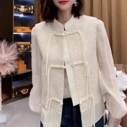 National Style Button Sequin Vest Women’s Design Sense 2024 Spring and Summer New Chinese Style Chanel Style Fashion All-match Outer Wear Vest
