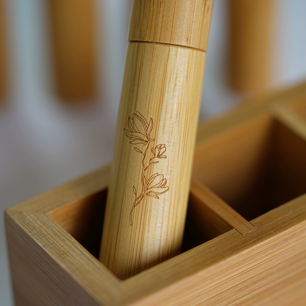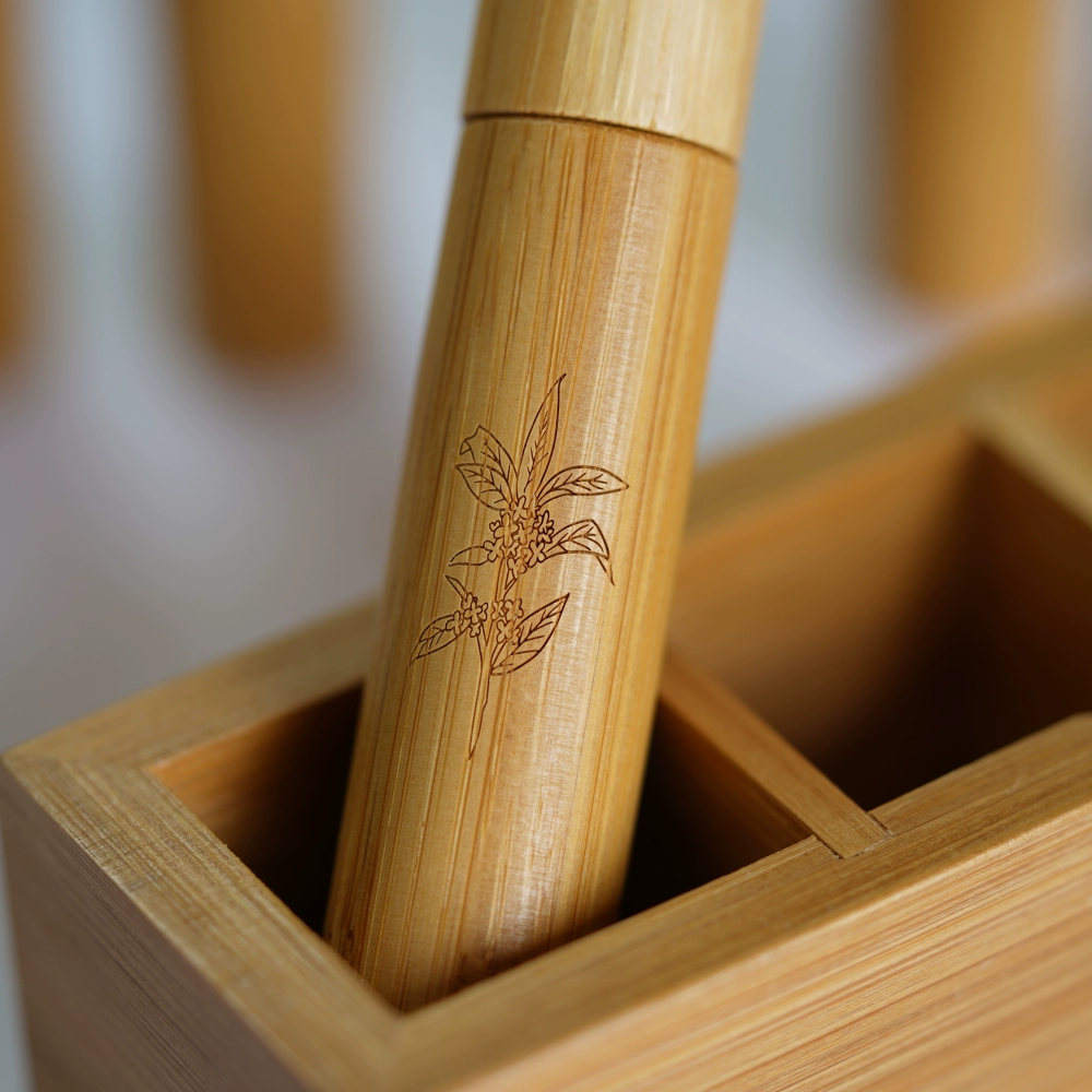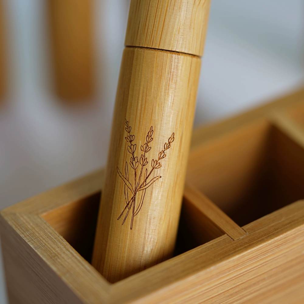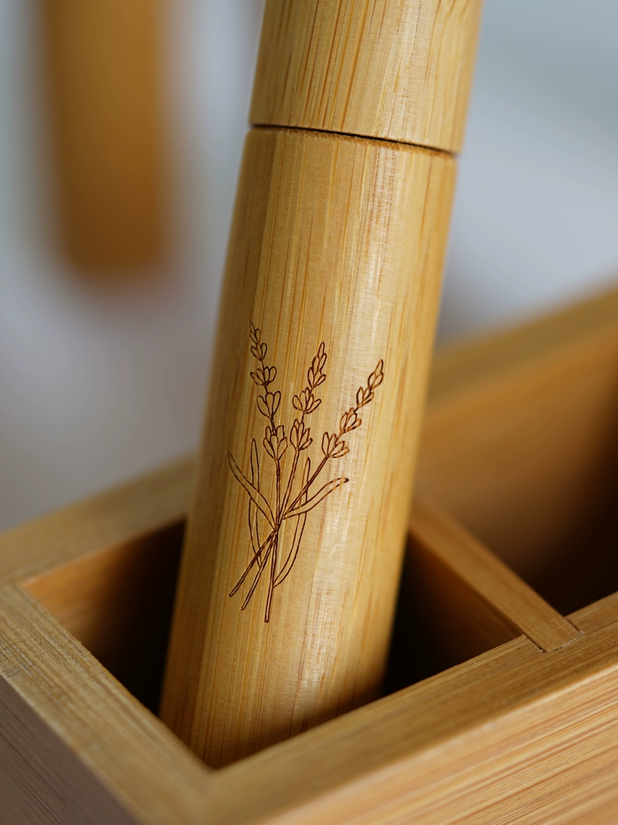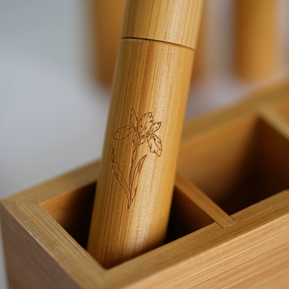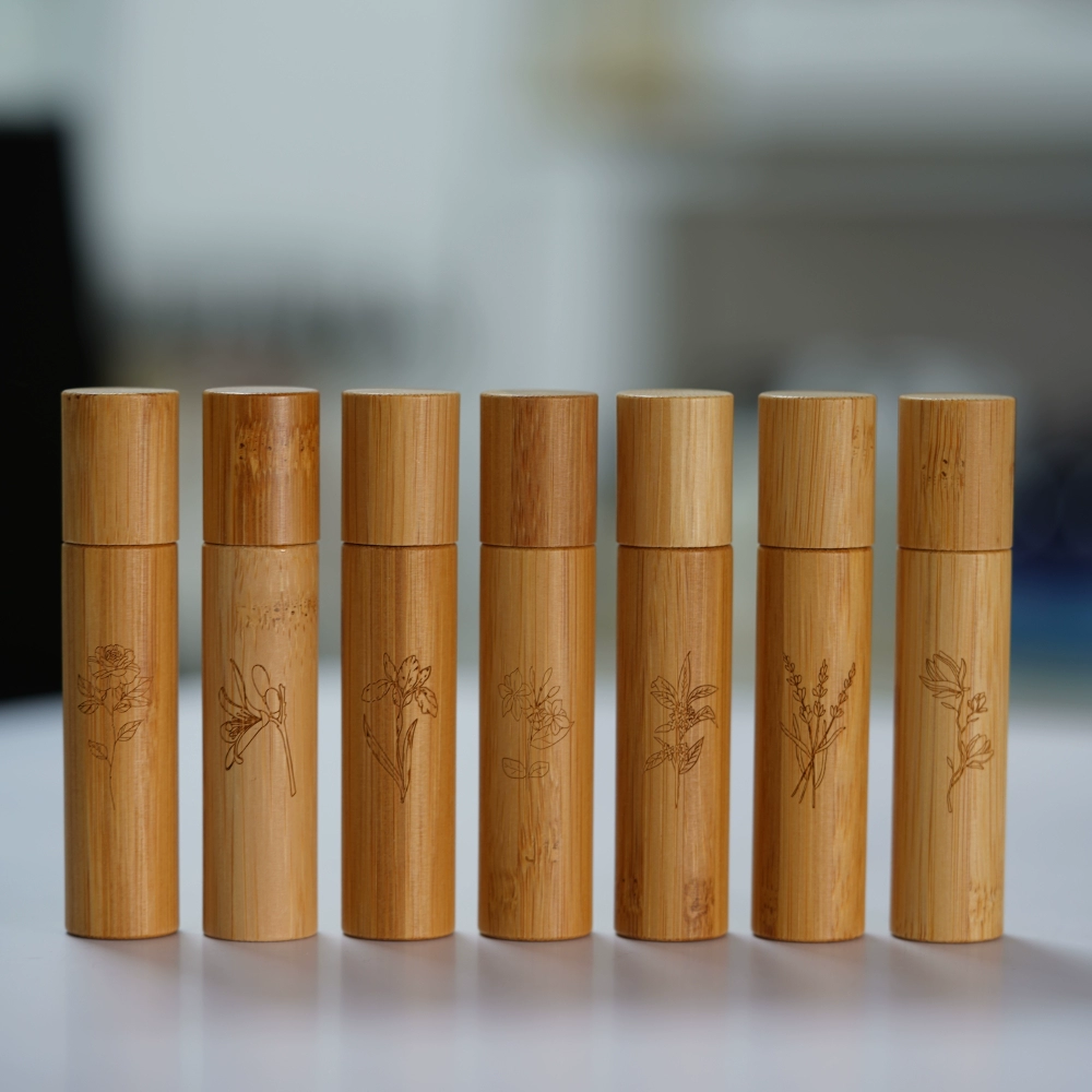 National style flower pattern natural bamboo light-shielding roller ball bottle