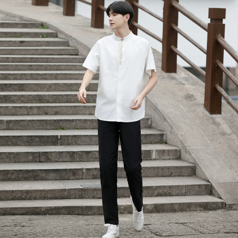 Guofeng men and women embroidered shirt improved Hanfu calligraphy pleated skirt suits new Chinese chorus stage performance class