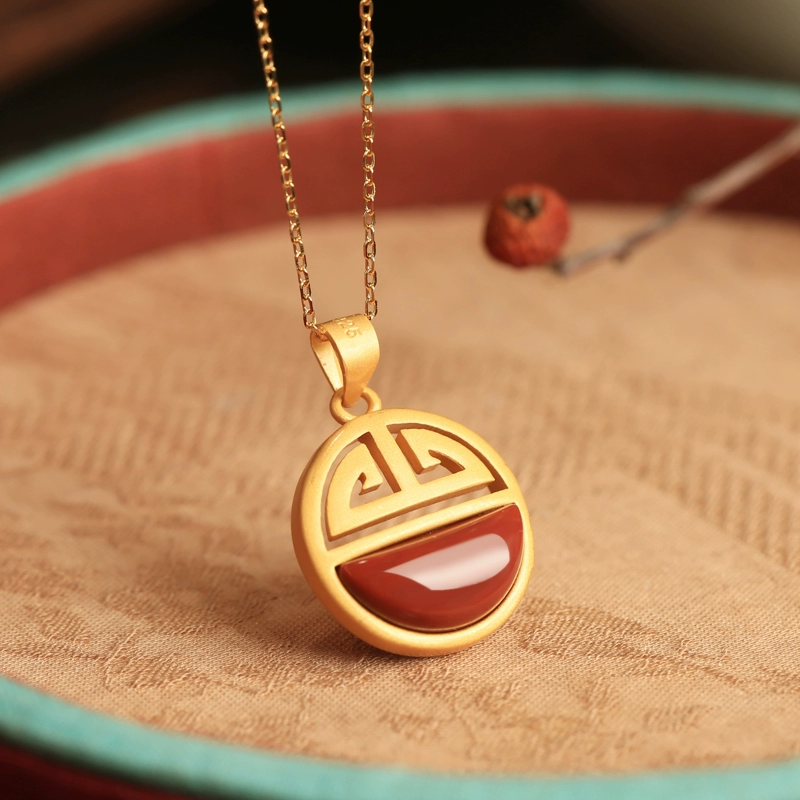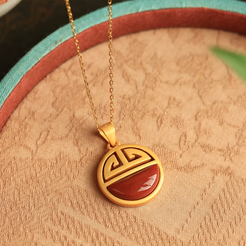 Guofeng Silver Silver Ping An Nothing Pendant Female South Red Agate