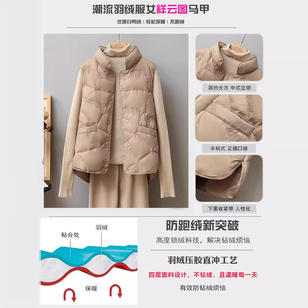 | nameOriginal | National Tide 2023 New Down Jacket Vest Short Vertical Collar Xiangyun Vest Waistle Lightweight Simple Jacket Women's Tide |