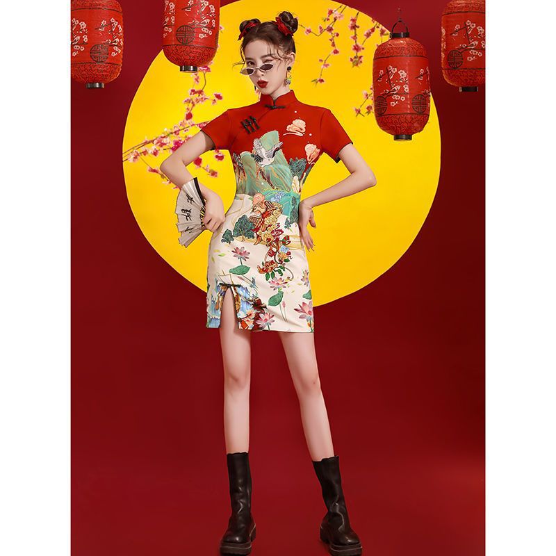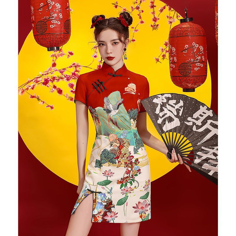 | nameOriginal | National tide cheongsam 2024 new improved young girl short dancing fried street Chinese style red |