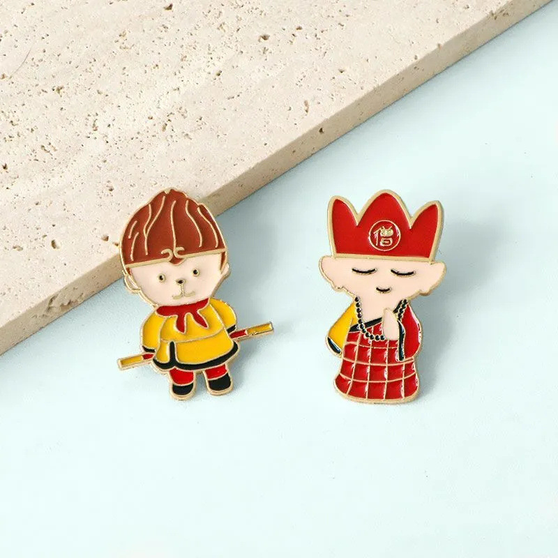 National Tide Journey to the West Sun Wukong Cartoon Brooch Pig Bajie Tang Priest Friar Sand Alloy Badge Schoolbag Pendant Small Pin