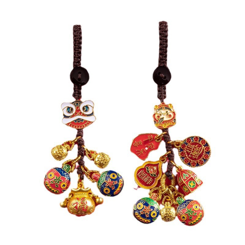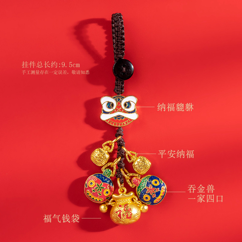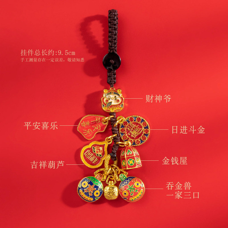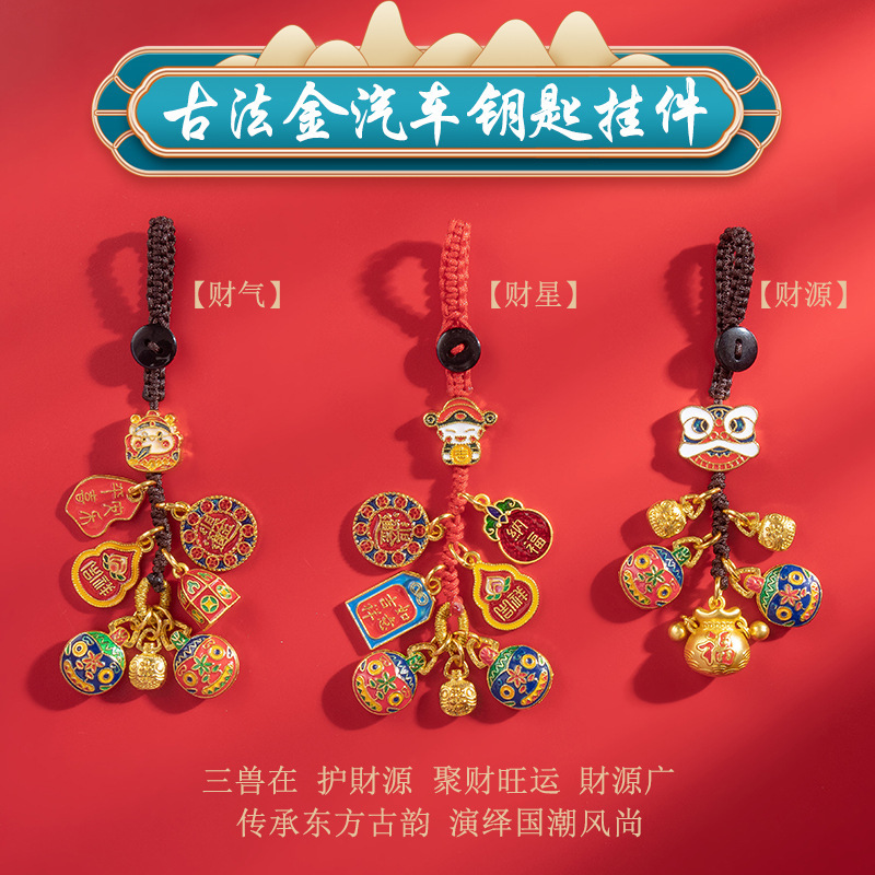 National Tide Vintage Sand Gold Pixiu Car Key Pendant Woven Rope Bag Dragon Hanging Enamel Gold Swallowing Beast Keychain