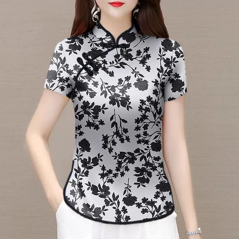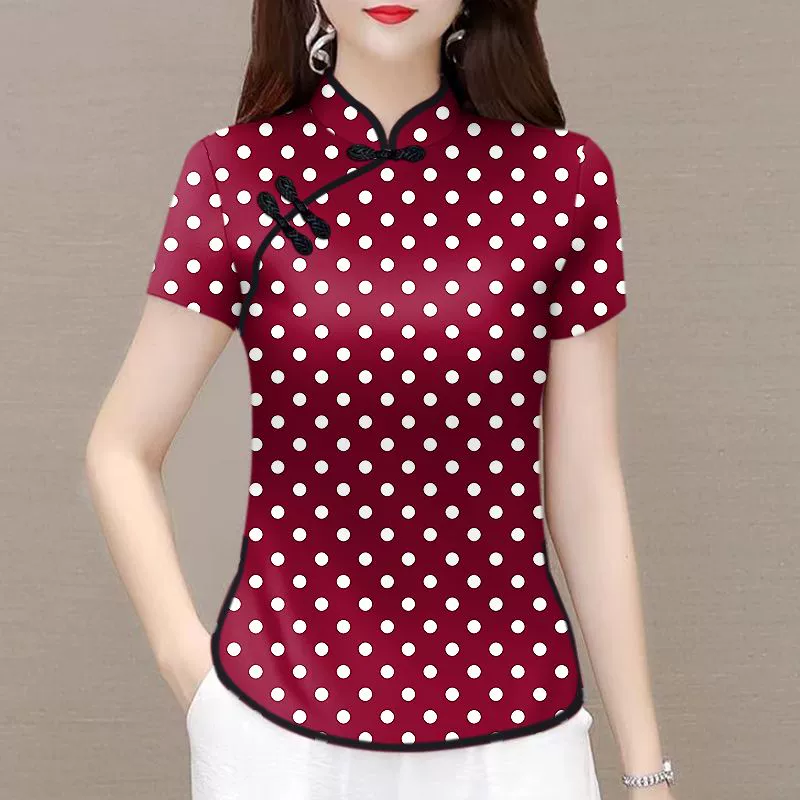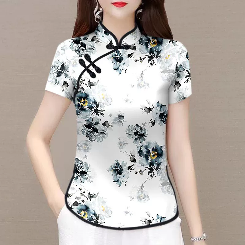 | nameOriginal | National trend new Chinese style split stand collar short-sleeved top with button |