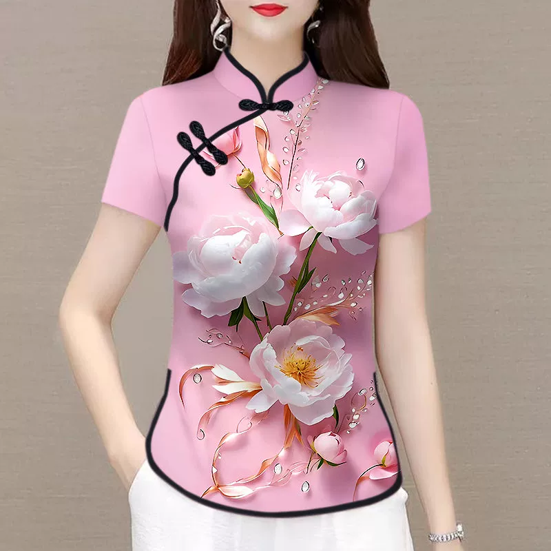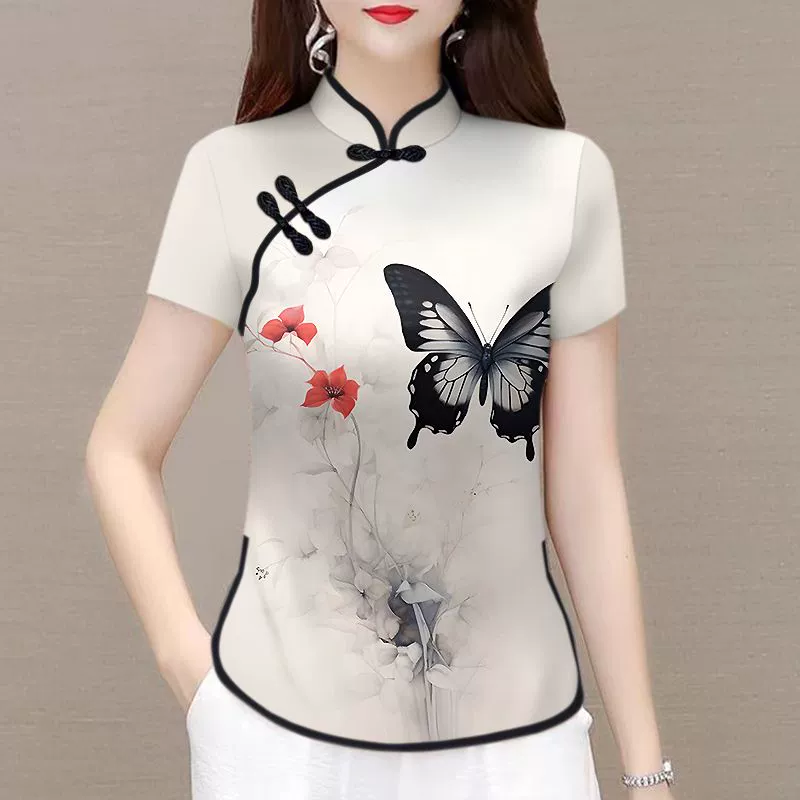 | nameOriginal | National trend new Chinese style stand collar split short sleeve top with button |