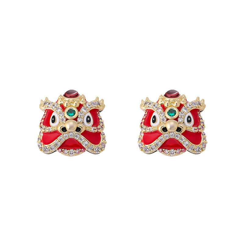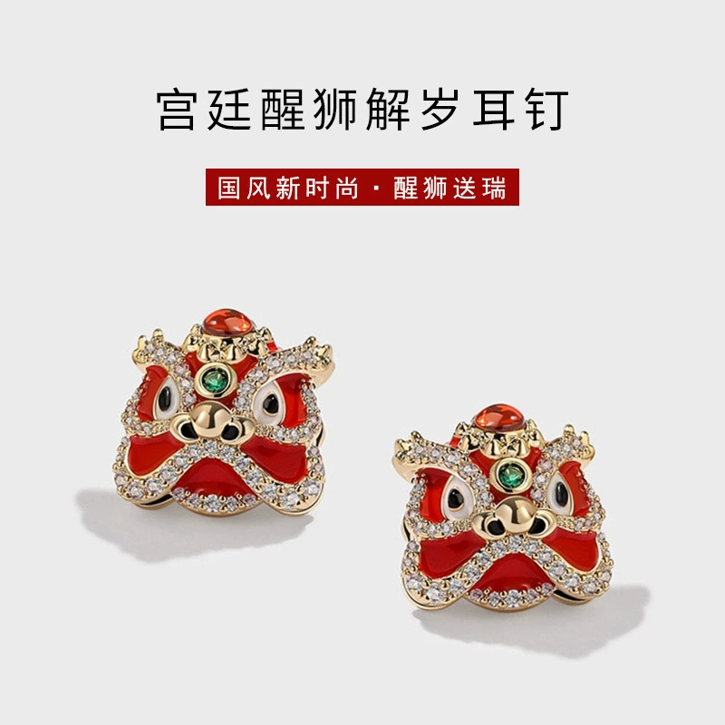 National trend new palace lion earrings retro Chinese style lion earrings women's earrings couple bracelets New Year's gift
