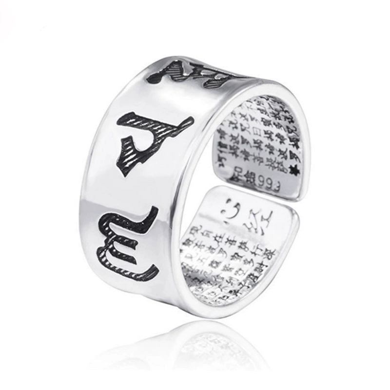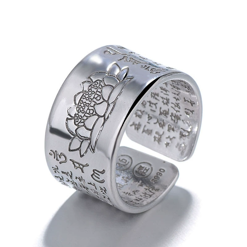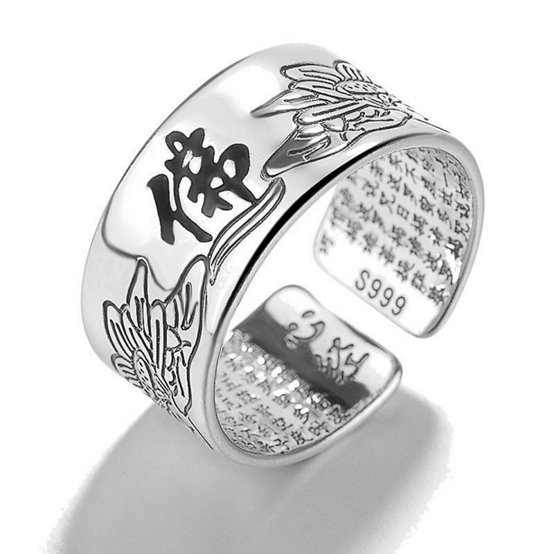 | nameOriginal | National trend personalized open Buddha ring six-character mantra heart sutra ring retro versatile trendy men's ring plated with sterling silver |