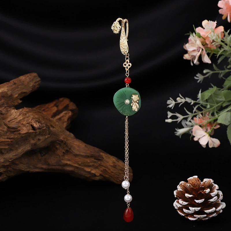 National trend retro cheongsam pressed placket fish play lotus leaf pendant tassel original Hanfu tea suit Chinese antique style brooch accessories