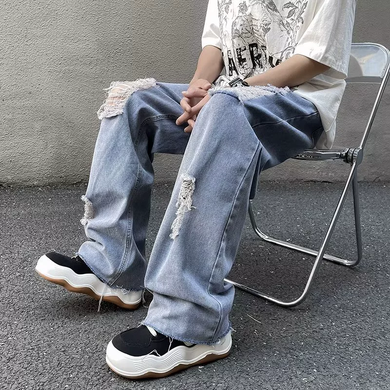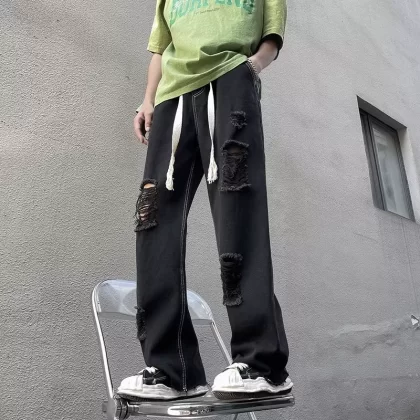 | nameOriginal | National trendy high street vibe handsome raw edge ripped pants |