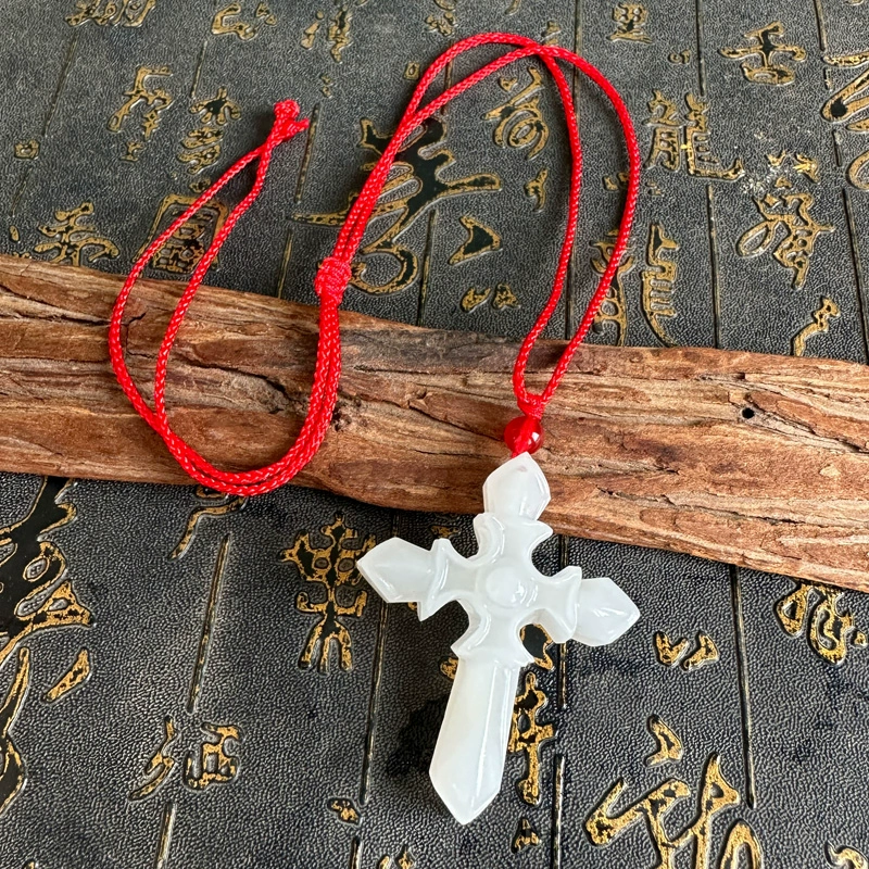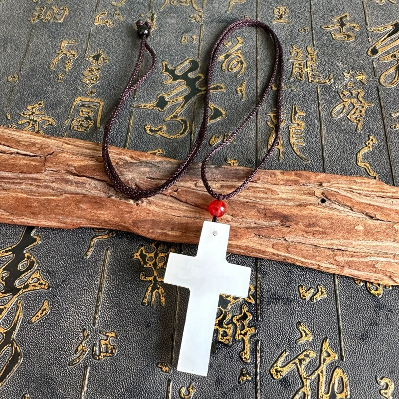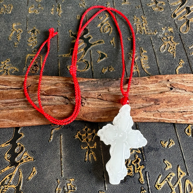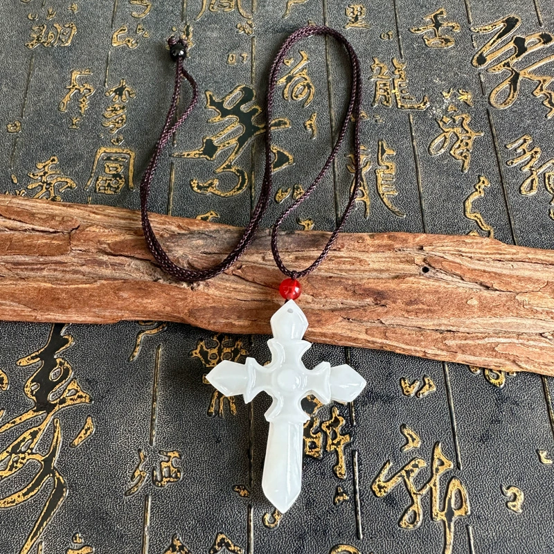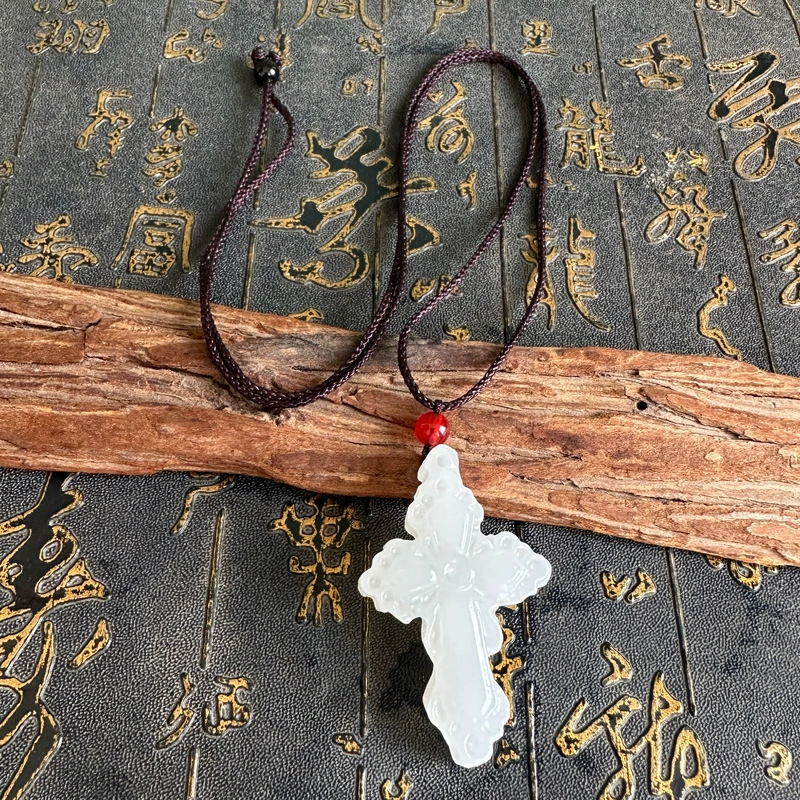 | nameOriginal | Natural Afghan white jade cross pendant for couples cross jade pendant for men and women jade pendant necklace supports engraving |