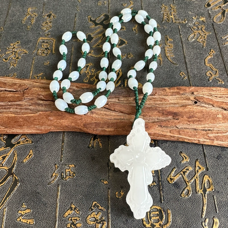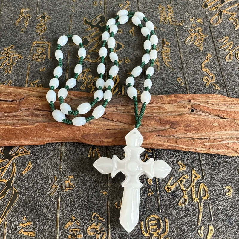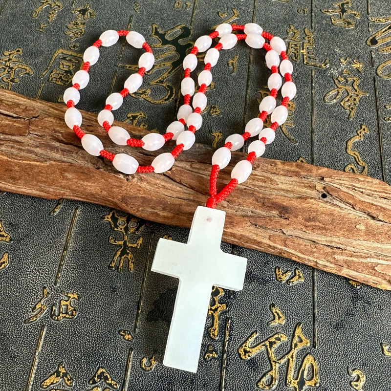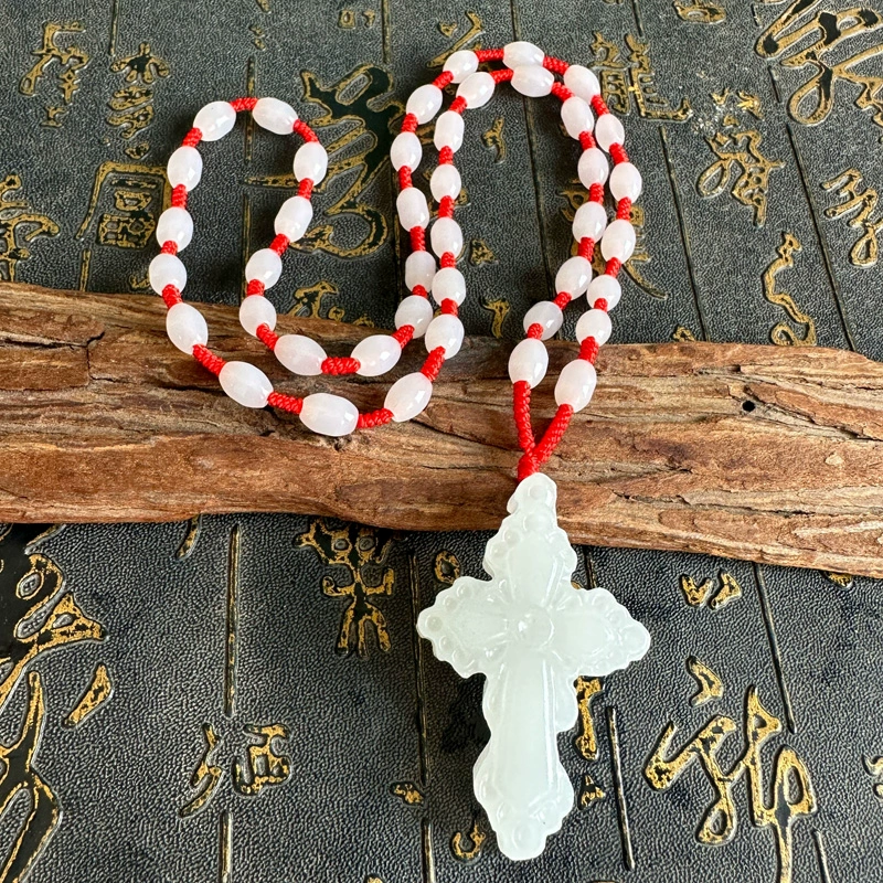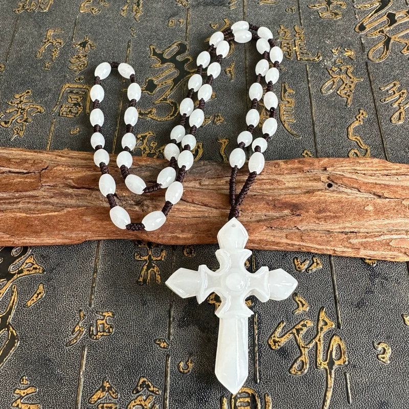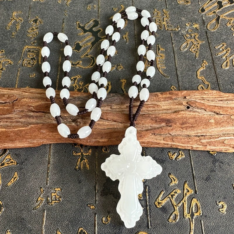 | nameOriginal | Natural Afghan white jade cross pendant for couples cross jade pendant for men and women jade pendant necklace supports engraving |