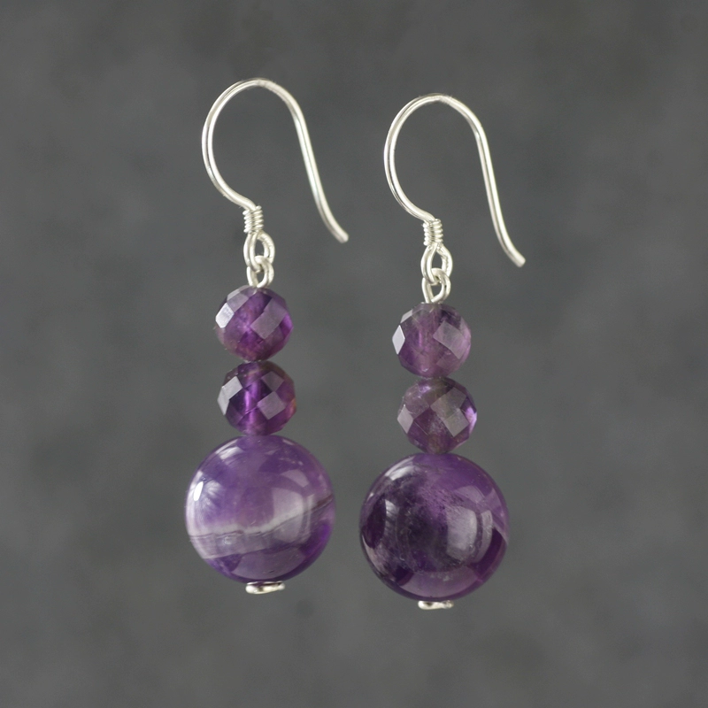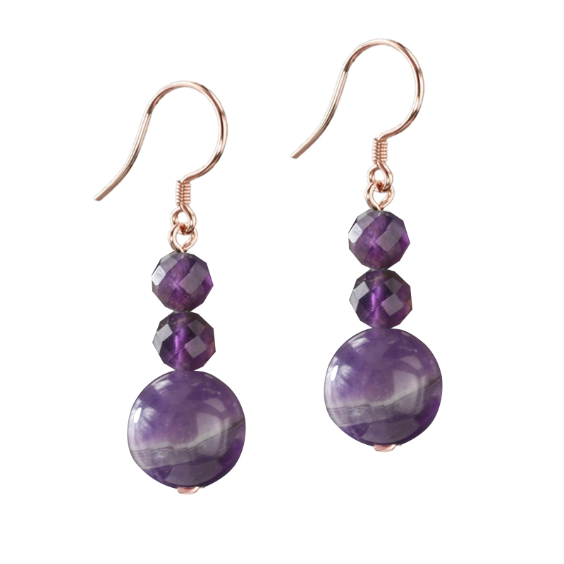 Natural amethyst internet celebrity Hong Kong style retro literary earrings