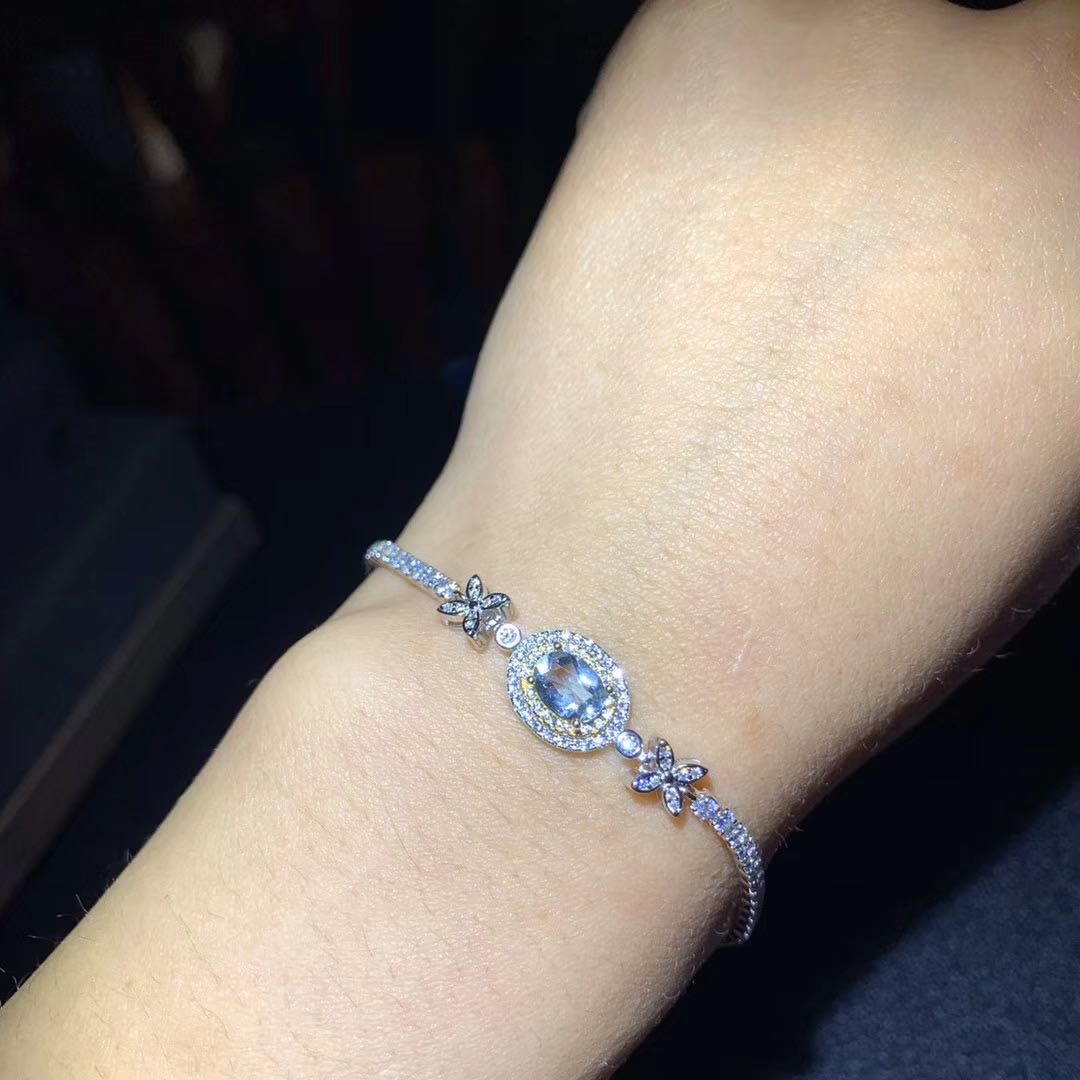 Natural aquamarine bracelet, good color, clean crystals, main stone size 5*7, elegant and delicate