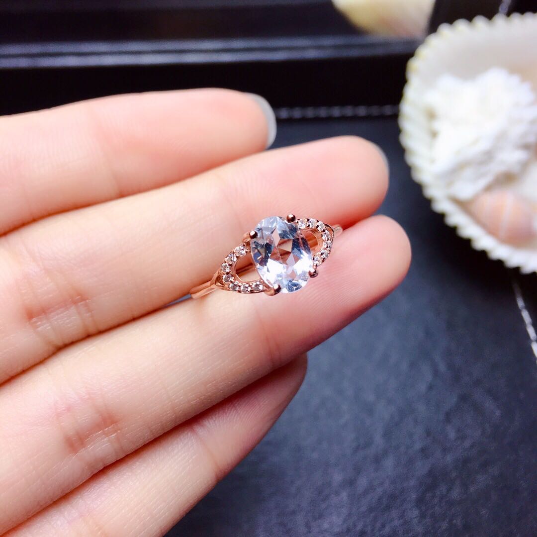 | nameOriginal | Natural aquamarine ring main stone 6*8mm 925 silver rose color two colors optional support testing |