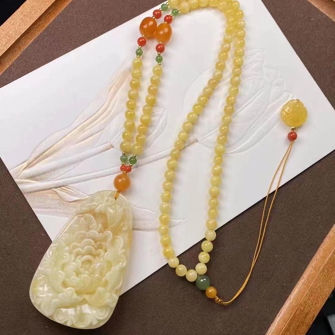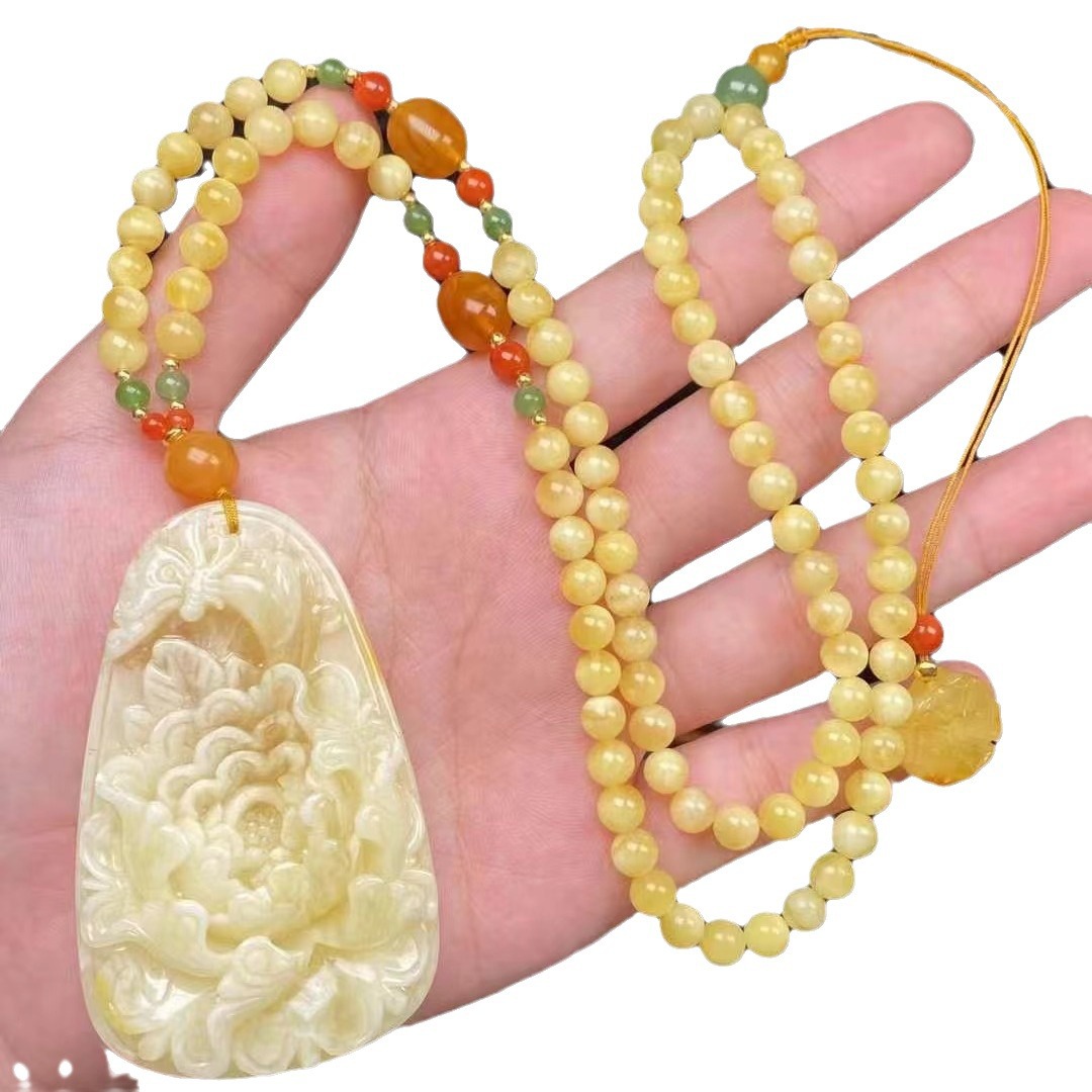 | nameOriginal | Natural Beeswax Peony Flower Pendant Carving Fine Lifelike White Flower Necklace Old Wax Jasper South Red |