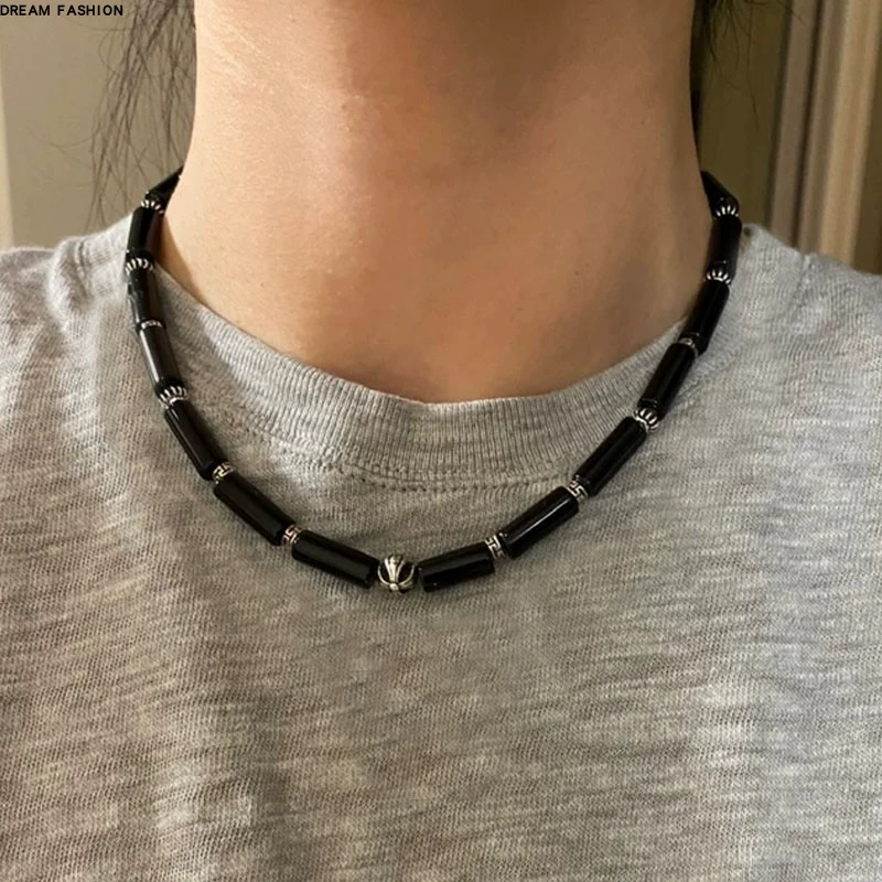 | nameOriginal | Natural black agate copper distressed pattern splicing handmade necklace clavicle chain men and women personality versatile temperament accessories |
