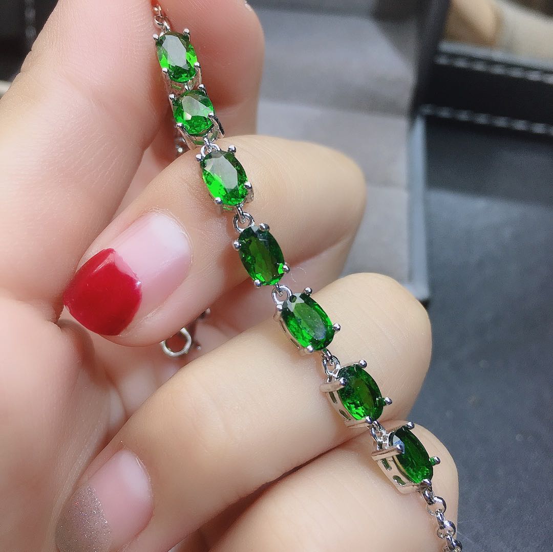 | nameOriginal | Natural Brazilian Diopside Bracelet Simple and Exquisite Main Stone 4*6mm 925 Silver Platinum Plated Fresh Bracelet |