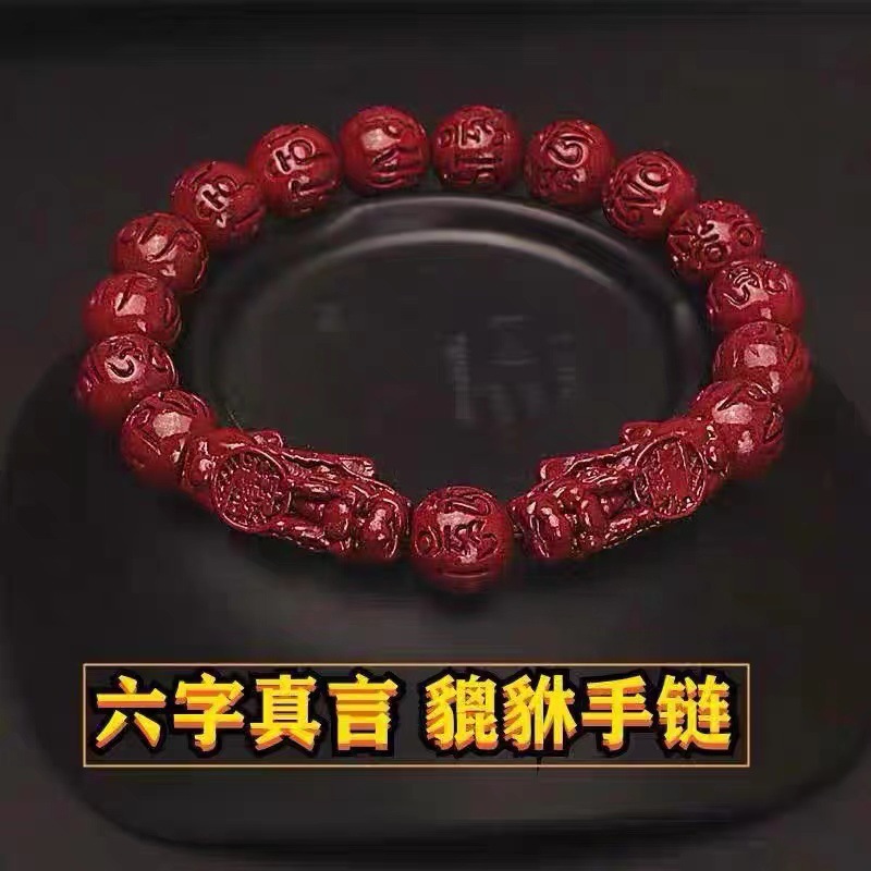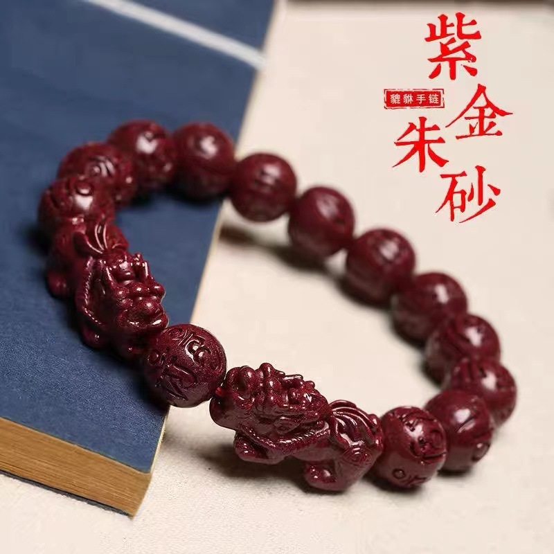 Natural cinnabar bracelet purple gold sand bracelet cinnabar six-son mantra bracelet couple style