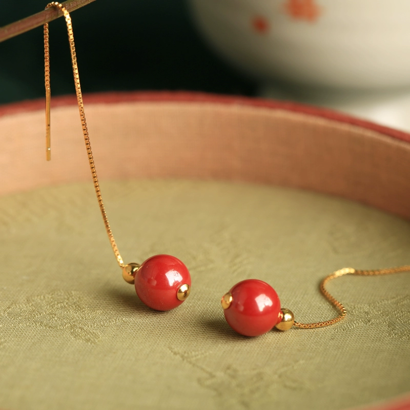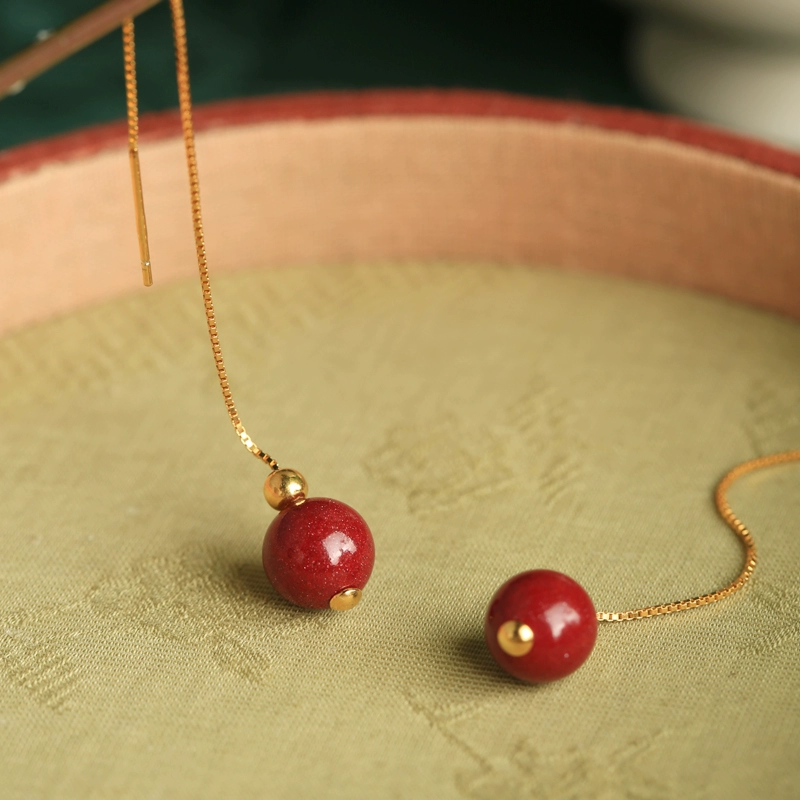| nameOriginal | Natural cinnabar sterling silver ear wire women's Chinese style red retro high-end tassel earrings earrings earrings |
