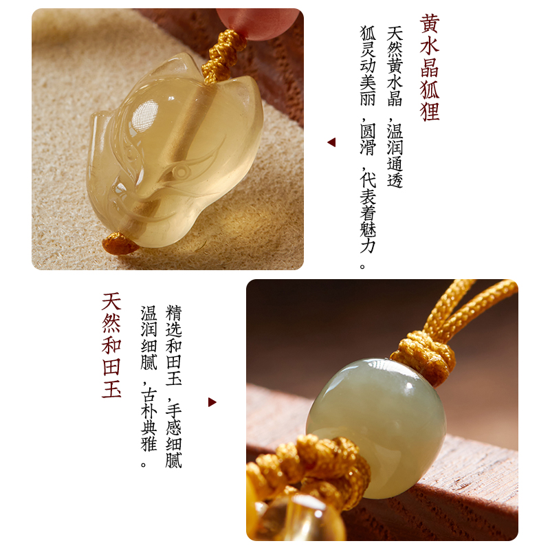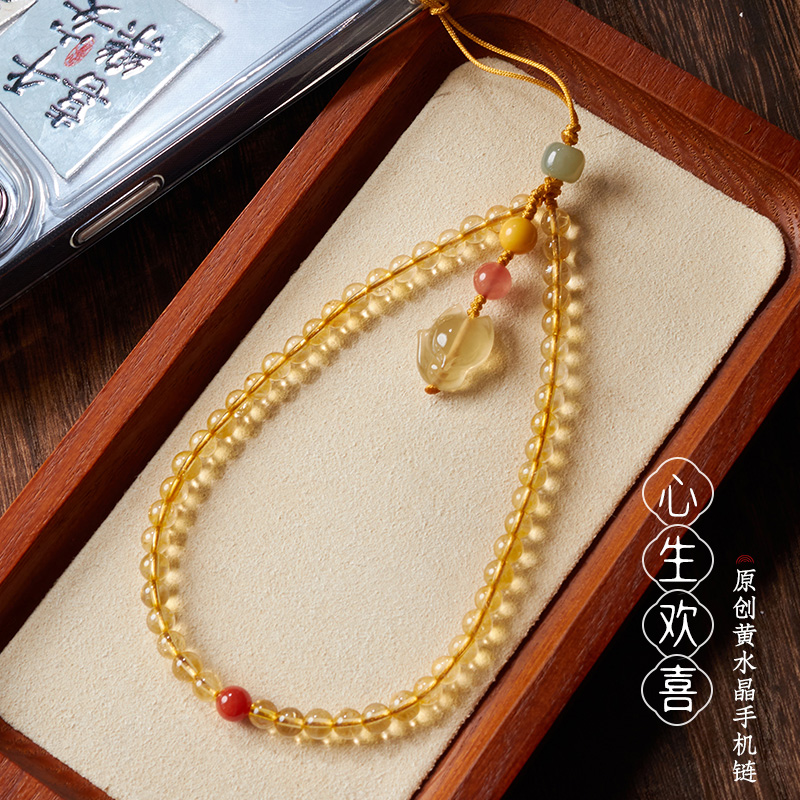 Natural citrine mobile phone chain female beeswax high-end exquisite fox retro literary fan mobile phone lanyard pendant niche