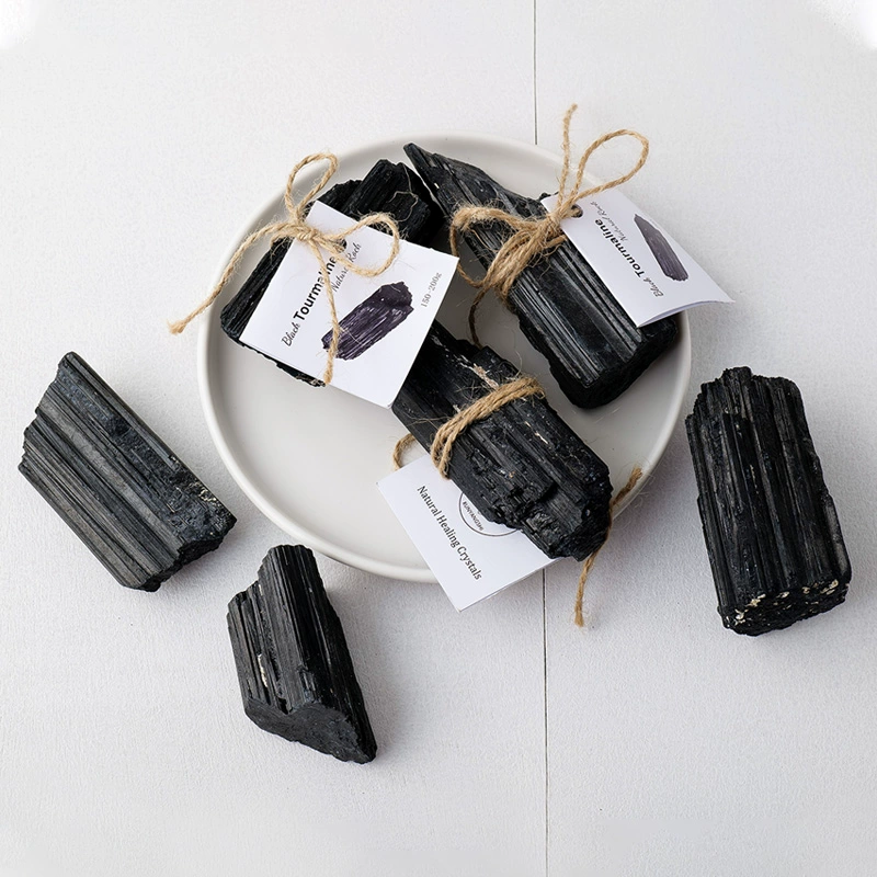 Natural crystal black tourmaline Nordic style purifying rough stone