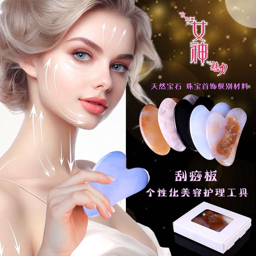 | nameOriginal | Natural crystal chalcedony powder crystal obsidian natural jade face shoulder neck meridian scraping artifact heart-shaped scraping plate |