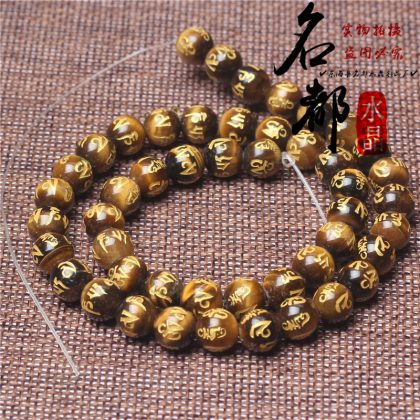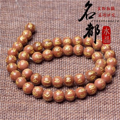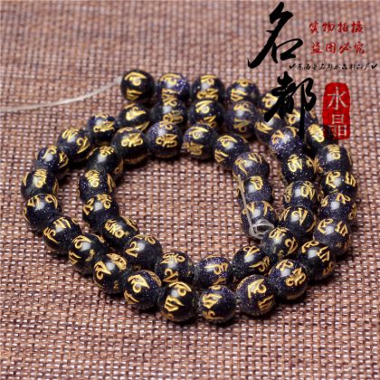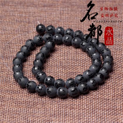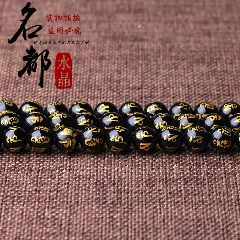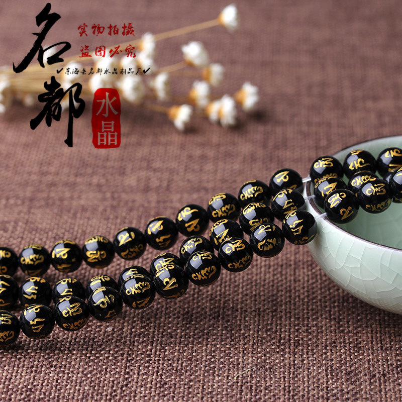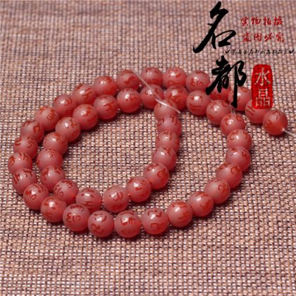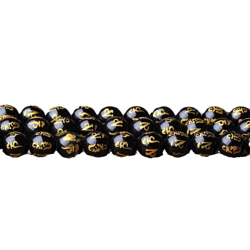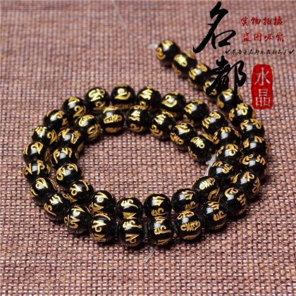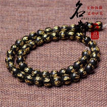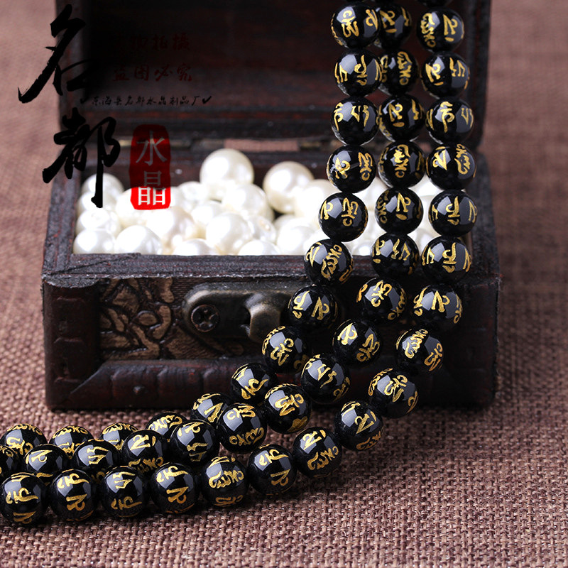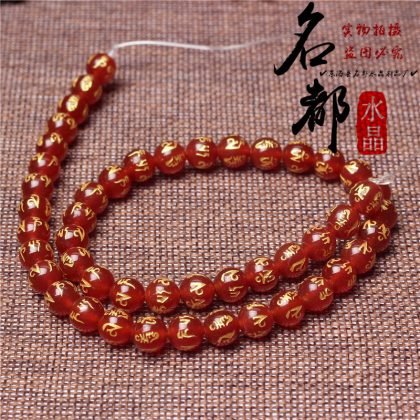 Natural crystal gilded black agate six word mantras loose beads frosted red agate six word mantras accessories
