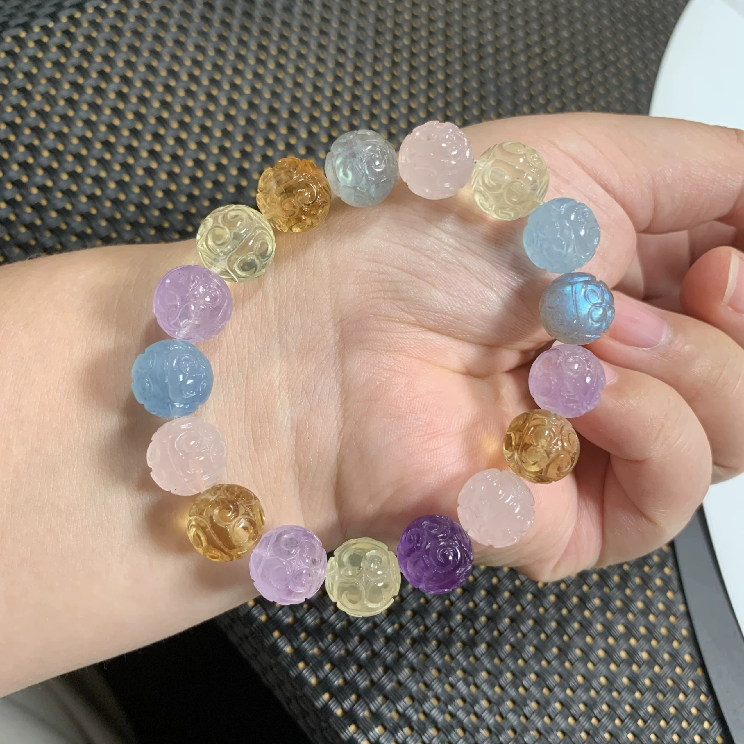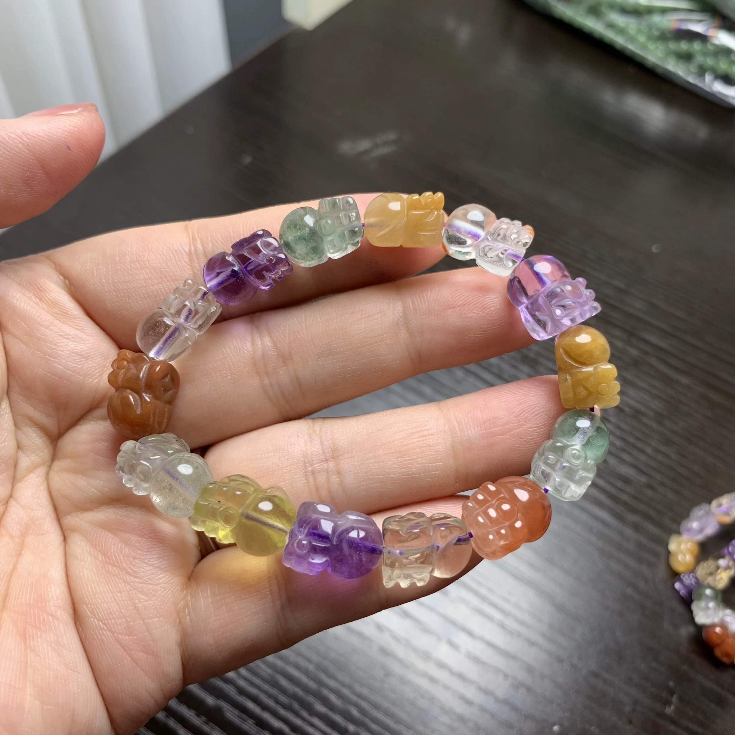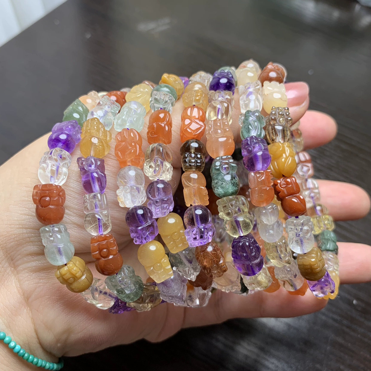 Natural crystal multi-treasure bracelet red rabbit fur green ghost pattern beads hexagonal beads amethyst Pixiu diy Fu Lu Shou