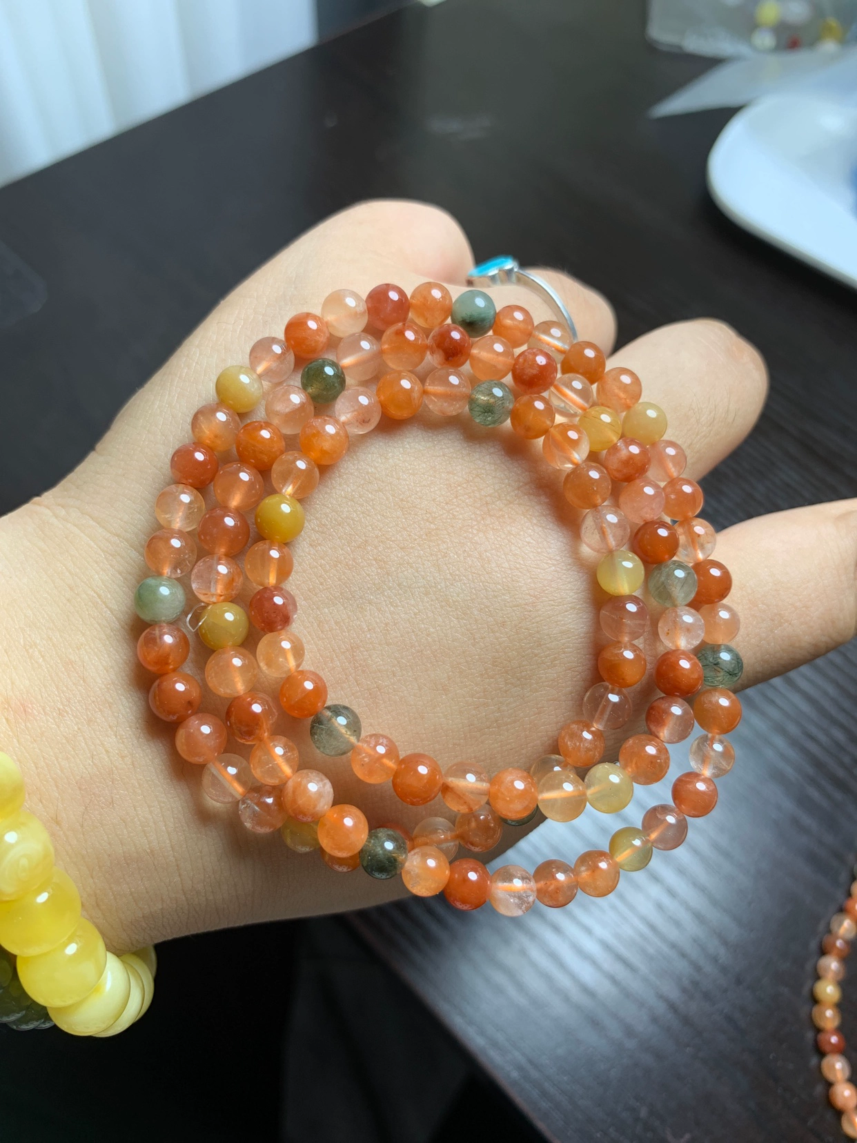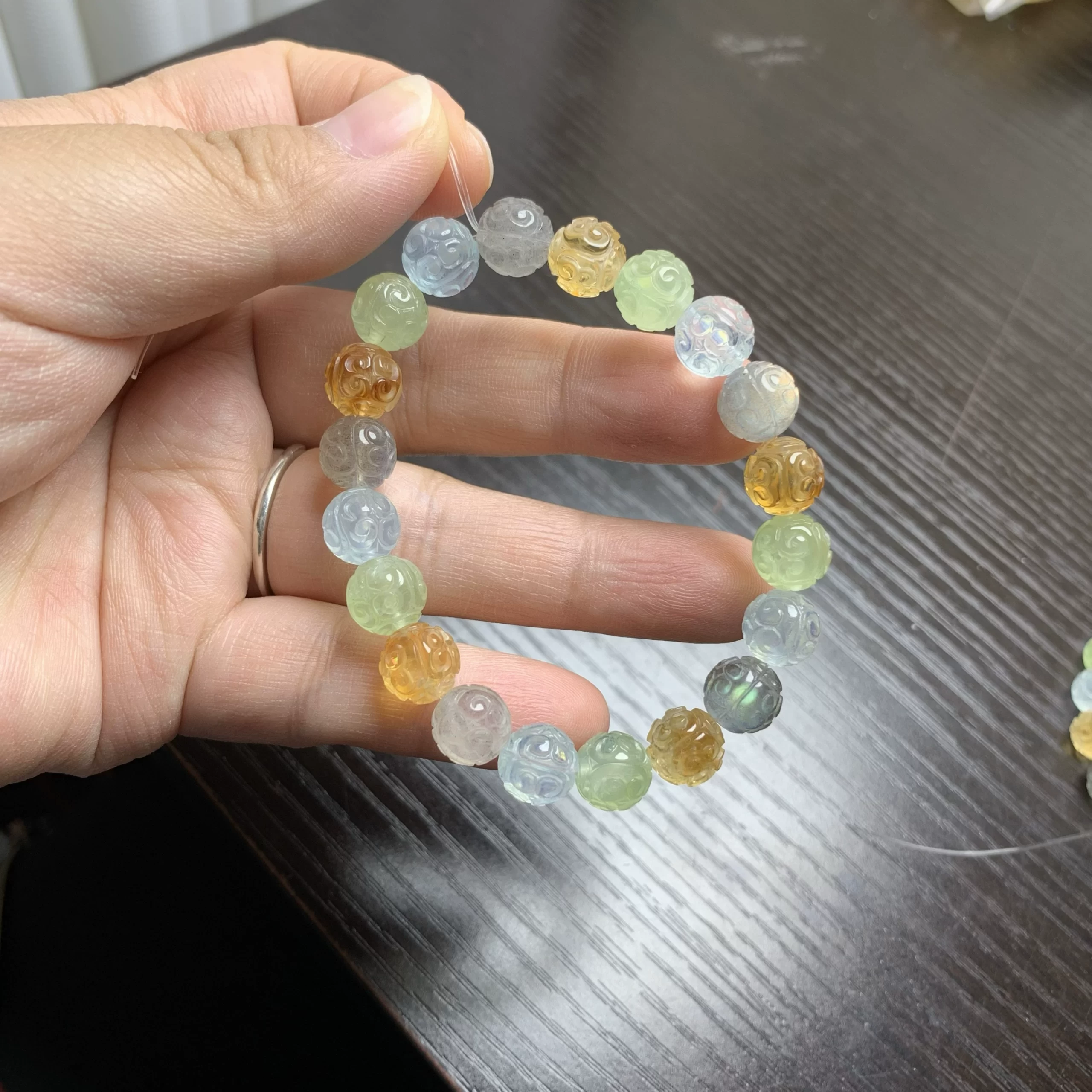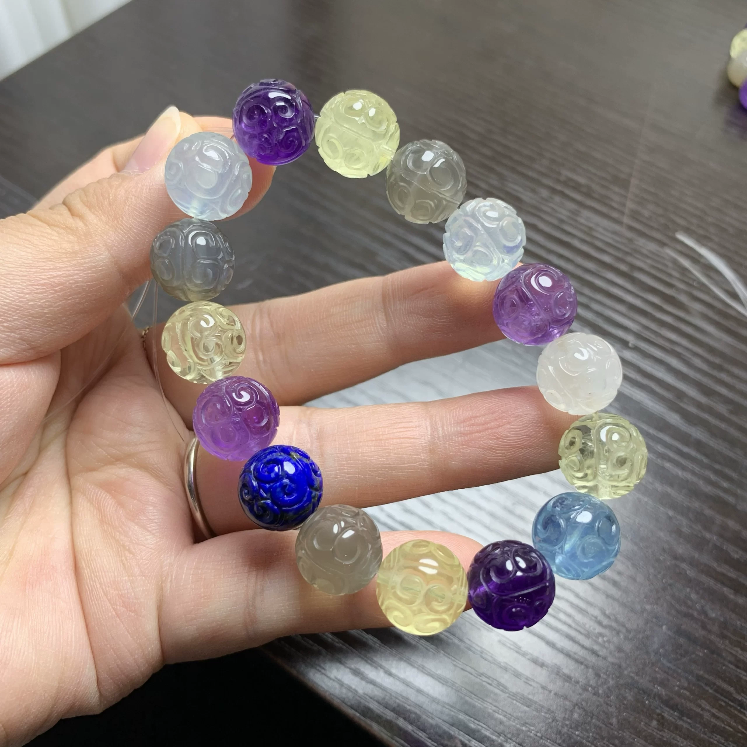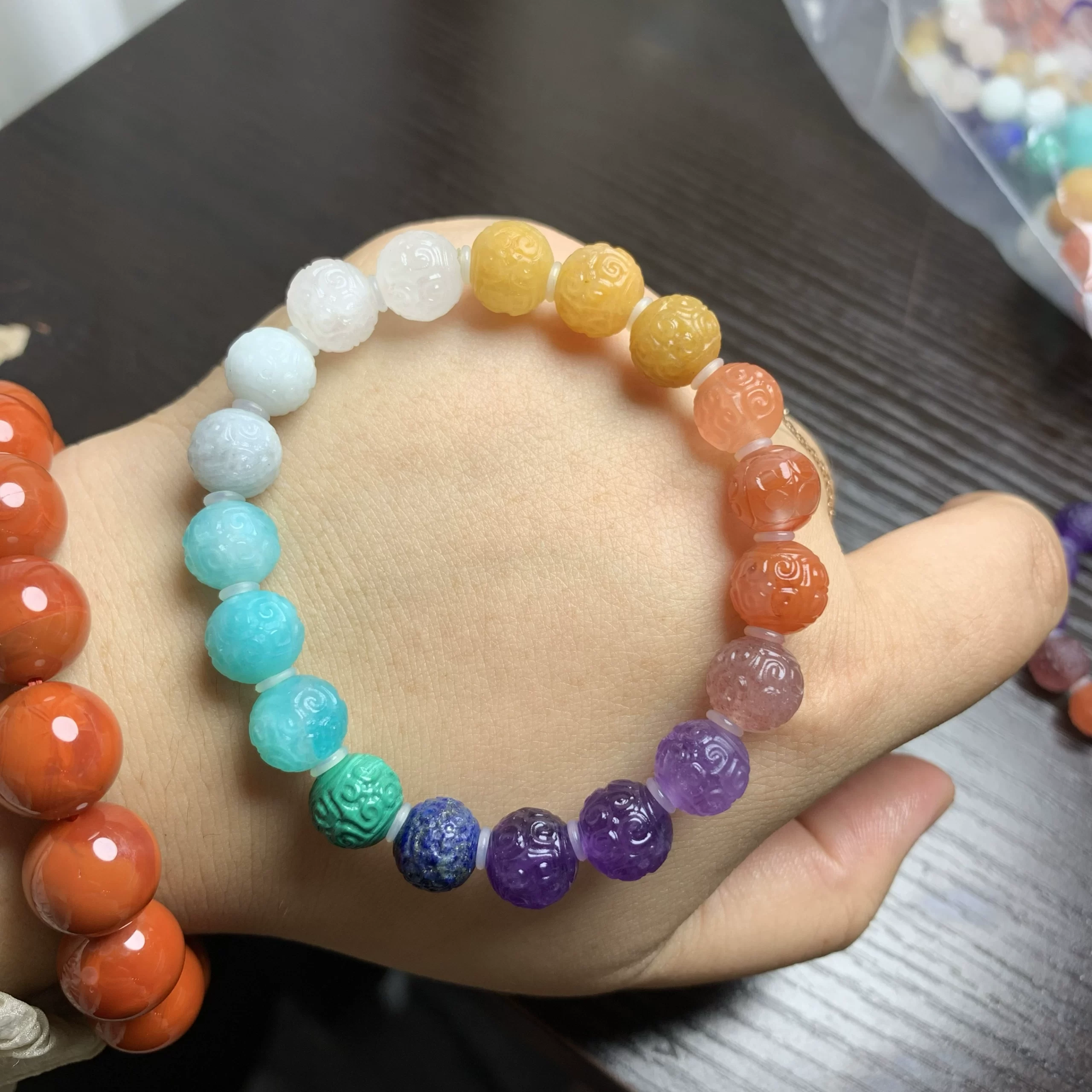 Natural crystal multi-treasure bracelet red rabbit fur green ghost pattern beads hexagonal beads amethyst Pixiu diy Fu Lu Shou